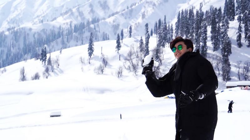 ฉากนี้ “อาตู่ นพพล” ผู้จัด-ผู้กำกับแห่งค่ายเป่าจินจง ยกกองไปปะทะลมหนาวกันถึง ยอดเขากุลมาร์ค สถานที่ท่องเที่ยวอันดับหนึ่งสวยสุดของแคชเมียร์ บนความสูง 3,000 เมตรจากระดับนํ้าทะเลวิวระดับพรีเมี่ยมขนาดนี้ ต้องเล่นให้ฟินสุดพลัง แม้ทุกคนจะเตรียมพร้อมมาปะทะความหนาว และหิมะครั้งนี้อย่างเต็มที่ แต่แรงลมนั้น ก็ซัดจนตัวชา ปากสั่น ชนิดฟันกระทบกันไม่หยุด (ฮา) จนต้องพึ่งน้ำร้อนคลายหนาว ฉากนี้ อาตู่บอก ภณ น้ำหวาน เล่นให้สนุก และกุ๊กกิ๊กเต็มที่ เอาชนิด อินต้องตาร้อนเป็นไฟ เริ่มถ่าย ภณ น้ำหวาน จัดให้เต็มที่ เหมือนมีความแค้นกันเล็กๆ น้ำหวานเปิดศึกก่อน คว้าหิมะปาโดนภณเต็มหน้า ภณก็เล่นสมจริง ปากลับแบบออมแรง กลัวนางเอกจะเสียศูนย์ จากนั้น ก็ได้เวลาสร้างซีนโรแมนติก ภณเห็นน้ำหวานยิ้ม หัวเราะมีความสุข ก็เดินเข้ามากอด และอยากเห็นรอยยิ้มนี้ตลอดไป จังหวะที่ทั้งคู่กำลังอยู่ในภวังค์ความสุข อินที่ยืนจ้องมองทั้งคู่อยู่พักใหญ่ ด้วยใจร้อนรน ก็เดินเข้ามาเบรกทุกอารมณ์ ภณ อิน ปะทะคารมกันชนิดไม่มีใครยอมใคร ส่วนใครจะเป็นฝ่ายโดนตอกกลับจนเงิบ ติดตามชมฉากหวานรักสามเส้าฉากนี้ได้ในวันศุกร์ที่ 24 เมษายน เวลา 20.15 น. ดูสดลุ้นสุด ช่อง 3กด 33