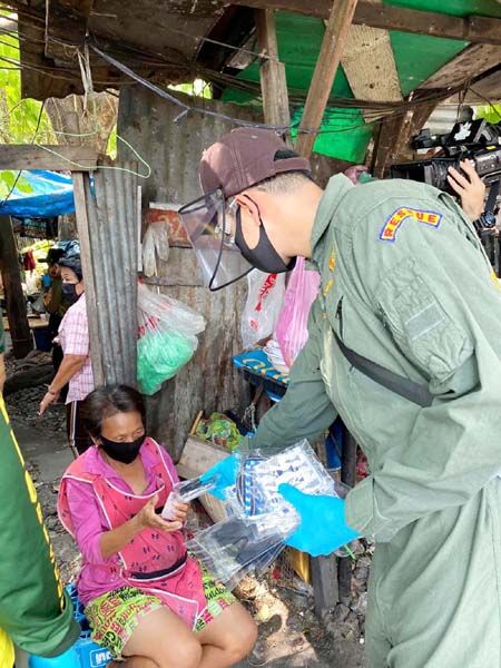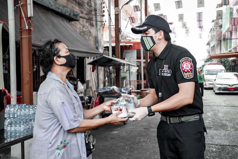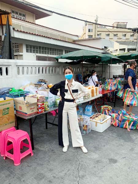 ด้าน ไมค์-ภัทรเดช สงวนความดีก็ใช้ลานหน้าบ้านแพ็กถุงยังชีพ บรรจุอาหารแห้ง น้ำดื่ม เจลล้างมือ และยาสามัญประจำบ้าน ไปแจกให้กับชาวบ้านย่านชุมชนคลองเตยเป็นที่เรียบร้อย ส่วน หลุยส์ เฮส ก็ซื้อน้ำดื่มและหน้ากากผ้า ไปมอบให้กระทรวงการพัฒนาสังคมและความมั่นคงของมนุษย์ เพื่อให้เจ้าหน้าที่นำไปแจกจ่ายให้กับผู้คนไร้บ้าน และผู้ที่ขาดแคลนต่อไป ฟากพระเอกดาวรุ่ง เข้ม-หัสวีร์ ภัคพงษ์ไพศาล ก็ได้ติดตามนักแสดงรุ่นพี่ที่ตนเองนับถืออย่าง ท็อป-บิณฑ์ และ ไทด์-เอกพันธ์ บรรลือฤทธิ์ ไปแจกหน้ากากอนามัยให้กับผู้ที่พักอาศัยย่านชุมชนทางรถไฟยมราช