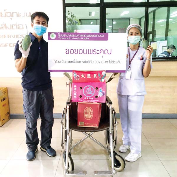 นักแสดงจิตอาสาอย่าง เกรซ-พัชร์สิตา อธิอนันตศักดิ์ ก็ไม่พลาดโชว์ฝีมือทำบราวนี่ไปมอบให้เจ้าหน้าที่และบุคลากรทางการแพทย์ ถึงโรงพยาบาลจุฬาลงกรณ์ และโรงพยาบาลหัวเฉียว ได้อิ่มอร่อยกันถ้วนหน้า ส่วนหนุ่มโหน-ธนากร ศรีบรรจง ก็เป็นสื่อกลาง รวบรวมรายได้จากการจัดจำหน่ายเสื้อร่วมกับแฟนคลับ ไปจัดซื้อหน้ากากอนามัยพร้อมแอลกอฮอล์ มอบให้กับศูนย์บริการโลหิตแห่งชาติ