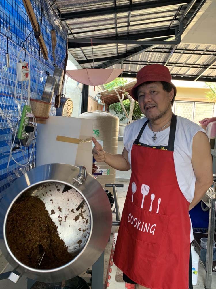 “วงการเพลงลูกทุ่งเงียบหลายมากครับงานหดหายมาตั้งแต่ต้นปีแล้วครับ ยิ่ง 2 เดือนกว่าๆที่ผ่านมา ไม่ต้องเอ่ยถึงไม่สามารถเล่นคอนเสิร์ตที่ไหนได้เลย รายได้ไม่มีเข้าต้องใช้เงินเก่าเก็บ เลยนั่งคิดนอนคิดกับภรรยาว่าจะทำอาชีพเสริมอะไรกันดีเพื่อจะหารายได้มาใช้จ่าย ด้วยความที่เราเป็นคนชอบทำอาหารและทำได้ดี เลยคิดว่าจะตำน้ำพริกขาย แต่มีคนอื่นๆ ทำกันเยอะแยะเต็มไปหมด เลยต้องหาจุดเด่นของน้ำพริกเราที่ไม่มีคนทำมาก่อนเลยเป็นที่มาของ’พ่อครัว หมวกแดง’ กับ ‘น้ำพริกกะเพรา ป.2’ ซึ่ง ป.2 ก็มาจาก ‘เนื้อปลาทู’ นั่นเองที่เราใช้เนื้อปลาทูเน้นๆ ผสมผสานกับเครื่องปรุงรสจัดจ้าน ขายกระปุกล่ะ 120 บาท ค่าส่ง 50 บาทตอนนี้มีโปรโมชั่น 3 กระปุก 300 ส่งฟรี สั่งได้ที่ เฟสบุ๊ค ต้อย หมวกแดง หรือไลน์แอด @685 llmss