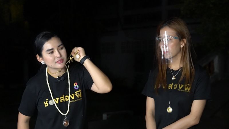 ซึ่ง “จ๊ะ”เล่าให้ฟังว่า จ๊ะเป็นแฟนรายการ “ช่องส่องผี” มานานมาก เพราะเราเป็นคนเชื่อเรื่องบาปบุญคุณโทษอยู่แล้ว แต่ไม่คิดว่าจะได้ไปออกรายการนี้ เพราะจ๊ะเป็นคนที่กลัวผีมากๆ แล้วที่บ้านจ๊ะเอง มีพ่อแก่อยู่เยอะมากในห้องพระ ทุกครั้งที่เราได้ไปทำบุญเราก็จะรู้ว่าเหมือนเราได้รับภารกิจจากพ่อแก่ให้ไปทำ ไม่ว่าจะสร้างเมรุ ทำบุญต่างๆ จนครั้งนี้ตัวจ๊ะเองอยู่ๆก็ได้รับการติดต่อจากทางพี่บ๊วย เชษฐวุฒิ ว่าจะมาที่วัดบ้านแก จ.อ่างทอง เพื่อสยบความเฮี๊ยนของที่วัดแห่งนี้ ให้คนได้กลับมาทำบุญกัน ซึ่งที่นี่ขึ้นชื่อว่าผีดุมาก ตัวจ๊ะเอง เป็นคนพื้นเพในพื้นที่เองด้วย ได้ยินข่าวลือมาตั้งแต่ก่อนจ๊ะเกิดแล้วมั้ง เรื่องความเฮี๊ยน แต่ไม่เคยไปเลย ทั้งที่วัดบ้านแก อยู่ไม่ไกลจากบ้าน ห่างแค่ 3-4 กม.เอง แล้วจ๊ะเป็นคนเชื่อเรื่องนี้มากไม่คิดมาจะมาวัดนี้ ขนาดยอมขับรถอ้อมไปทางอื่น แต่ถ้าจำเป็นต้องขับรถผ่านก็จะไม่หันหน้ามามองเลย เราก็เริ่มรู้แล้วว่า เราต้องไปทำภารกิจนี้ให้สำเร็จให้ได้