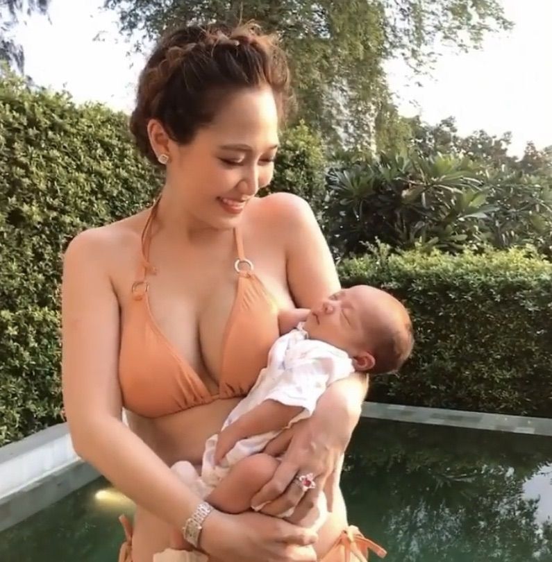 ด้าน “ไฮโซน้ำน้ำหวาน” ก็โพสต์คลิปอุ้มน้องมาโก้ใส่ชุดทูพีช เช่นเดียวกัน พร้อมลงแคปชั่นว่า พามาโก้ออกนอกบ้านครั้งแรก แม่ฟินเวอร์กักตัวมาหลายเดือน และยังแท็กข้อความไปยังไอจี นาวินต้าร์ ว่าเราเปลี่ยนสถานที่เลี้ยงลูกกันเนอะ จนมีบรรดาสาวกไอจี เข้ามาคอมเมนต์มากมายว่า “กราบหุ่นคุณแม่ หุ่นดีมาก ๆ ขนาดเพิ่งคลอดน้องได้ไม่ถึงเดือนสุดยอดมาก หรือแม้แต่ข้อความว่า อิจหุ่นคุณแม่จ้า หุ่นสวย บางรายถึงเข้ามาแซวว่า หุ่นคุณแม่หลังคลอดจริง ๆใช่ไหมคะ