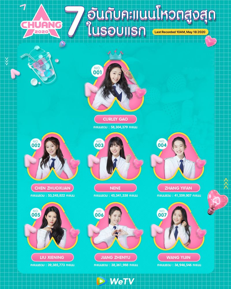 โดยอันดับผลคะแนนโหวตของเด็กฝึกที่ผ่านเข้ารอบทั้ง 55 คน (อัพเดท ณ วันที่ 18 พฤษภาคม เวลา 10.00 น.)เด็กฝึกที่ได้คะแนนโหวตสูงสุด 7 อันดับแรก ขึ้นแท่นเป็นตัวเต็งผู้ชนะของรายการนี้ ประกอบด้วย อันดับที่ 1 เคอร์ลี่เกา (Curley Gao) 58,304,379 คะแนน, อันดับที่ 2 เฉินจั๋วเสวียน (Chen ZhuoXuan) 53,245,822 คะแนน, อันดับที่ 3 เนเน่ หรือเจิ้งหน่ายซิน(Zheng Naixin)45,341,338 คะแนน, อันดับที่ 4 จางอี้ฝาน (Zhang Yifan)41,559,007 คะแนน,อันดับที่ 5 หลิวเซียหนิง (Liu Xiening)39,385,773 คะแนน, อันดับที่ 6 เจียงเจินอวี่ (Jiang Zhenyu) 38,361,988 คะแน และอันดับที่ 7 หวังอี้จิ่น(Wang Yijin)36,946,456 คะแนน