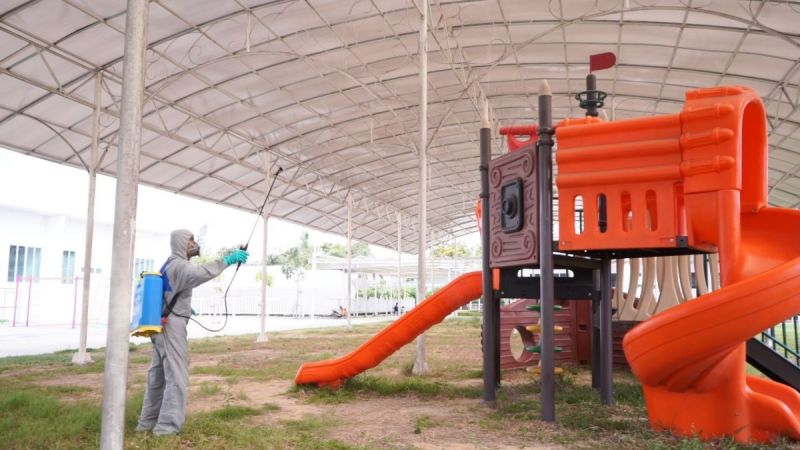 -ฉีดพ่นน้ำยา สเตอริแพลนท์ ทุกวันหลังเลิกเรียน โดยไม่มีสารเคมีตกค้าง เพื่อที่จะได้ทำการเรียนการสอนในวันรุ่งขึ้นได้ทันที (สเตอริแพลนท์ เป็นน้ำยาฆ่าเชื้อโรคที่ปลอดสารพิษและปราศจากสารเคมี 100% ซึ่งผลิตโดยกรรมวิธีที่ทันสมัยโดยใช้กระบวนการอิเล็คโตรไลท์น้ำเพื่อให้เกิดพลังงานไฟฟ้าประจุบวกในการฆ่าเชื้อโรค)