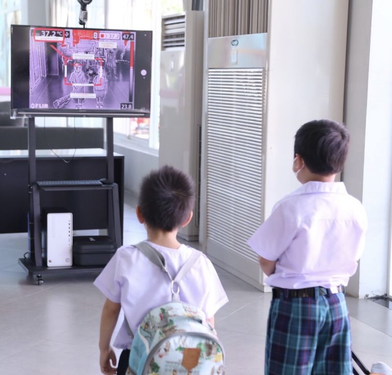 -มีจุดคัดกรองนักเรียน, ผู้ปกครอง, บุคลากรครูและทุกๆ ท่านที่เข้ามาในบริเวณโรงเรียนทุกครั้ง โดยจะต้องผ่านเครื่องวัดไข้ด้วยเทอร์โมสแกน พร้อมมีที่เหยียบเท้ากดเจลล้างมือเพื่อลดการสัมผัส