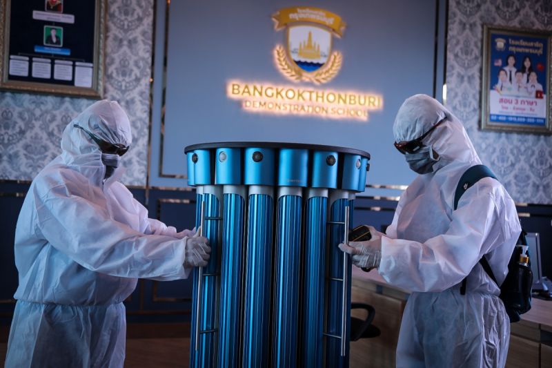 ครูเอิร์น-จิรวรรณ ชัยรุ่งเรือง ผู้อำนวยการบริหาร โรงเรียนสาธิตกรุงเทพธนบุรีเปิดเผยว่า ทางโรงเรียนฯ ได้วางมาตรการอย่างเข้มข้น ป้องกันการระบาดของ ไวรัส โควิด-19 เพื่อต้อนรับเปิดเทอมอย่างเต็มที่ โดยมีการพ่นน้ำยาฆ่าเชื้อดังนี้
