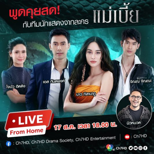 แฟนละคร แม่เบี้ย ทาง ช่อง 7HD เตรียมรอฟังเรื่องแซ่บ เมื่อ เอส-กันตพงศ์ บำรุงรักษ์ กับ นาว-ทิสานาฏ ศรศึก จะชวน จิณณ์ จิณณะ และ ใจบัว ฮิดดิง มานั่งทอล์ก บอกเล่าเบื้องหลังการถ่ายทำละครแบบเอ็กซ์คลูซีฟ ให้แฟน ๆ ฟังแบบจุใจ ในกิจกรรม Facebook Live พูดคุยสด กับทีมนักแสดงจากละคร แม่เบี้ย วันอังคารที่ 17 สิงหาคมนี้ เวลา 18.00 น. ทาง Facebook Live : Ch7HD, Ch7HD Drama Society, Ch7HD Entertainment และ Youtube : Ch7HD โดยมีพิธีกรสุดจี๊ด นิวหนวด-ธนิศ แก้วนาค มารับหน้าที่ยิงคำถามเจาะลึกจัดเต็มให้แฟน ๆ ฟัง บอกเลยว่าห้ามพลาด