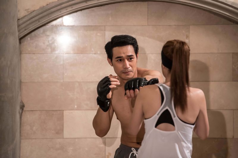 โดยฉากนี้เป็นตอนนี้ “ติณณ์”(โอม)ต้องฝึกศิลปะป้องกันตัวจาก “แคท” (ขวัญ) และ “เมย่า”(นุ้ย)