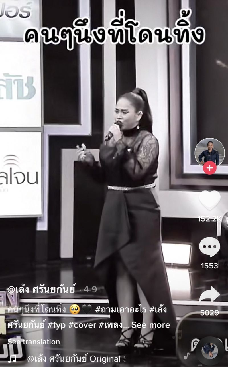 ยังคงเป็นที่ฮือฮาได้ตลอดสำหรับ ดิว่าลูกทุ่งเสียงทรงพลังอย่าง “เล้ง ศรันยกันย์”ดีกรีแชมป์ 18 สมัยจากรายการศึกวันดวลเพลง ที่ไม่ว่าเธอจะหยิบจับเพลงไหนมาร้องก็สามารถชนะใจคนดูได้เสมอ จนล่าสุดได้มีแฟนคลับนำวิดีโอที่เธอร้องเพลง ‘นิสัยหรือสันดาน’ในรายการดวลเพลงชิงทุนสงครามแชมป์ มาโพสต์ลง Tiktokพร้อมแคปชั่น‘ฟาดมาก’ได้รับยอดวิวพุ่งไปถึง 3.9 ล้านวิวส์ และรวมไปถึงเพลง ‘ถามเอาอะไร’ ที่เล้งโพสต์ลงในช่องทาง Tiktokของตัวเอง ก็ได้รับยอดวิวทะลุมากถึง 2 ล้านวิวส์แล้ว แถมยอดผู้ติดตามก็ดูท่าจะเพิ่มขึ้นเรื่อยๆ เรียกได้ว่ามาแรงอย่างฉุดไม่อยู่ เกินความคาดหมายของเธอไปมาก