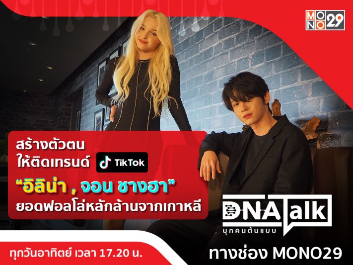 รายการ “DNA TALK บุกคนต้นแบบ” ในวันอาทิตย์นี้ (15พ.ค.) พิธีกร ได๋-ไดอาน่าจงจินตนาการพาผู้ชมไปบุกค้นหาดีเอ็นเอแห่งความสำเร็จและแรงบันดาลใจจากสองดาวติ๊กต๊อกที่บินตรงมาจากประเทศเกาหลี โดยมียอดฟอลโล่ผู้ติดตามมากกว่าสิบล้าน และยอดกดไลค์มากกว่าร้อยล้าน เริ่มที่สาวสวยชาวรัสเซีย อิลิน่า (Karimova Elina)มาพร้อมกับเอกลักษณ์ผมบลอนด์ทรงเสน่ห์ของเธอ ที่เธอนั้นเรียนและโตในประเทศเกาหลีตั้งแต่อายุ 5 ปี จุดประกายความฝันจากการเป็นอินฟลูเอนเซอร์ที่ครองใจแฟนคลับทั้ง ยูทูปเบอร์,อินสตราแกรม และดาวติ๊กต๊อกที่มีผู้ติดตามกว่า 11 ล้านคนแพ็คคู่มากับชายหนุ่มเพื่อนซี้สุดเท่ จอน ชางฮา (Jeon Changha)นักแสดงซีรีส์และนายแบบเกาหลีขนานแท้ผู้ขยายอิทธิพลติ๊กต๊อกตั้งแต่ยุคเริ่มใหม่ๆ จนปัจจุบันมียอดผู้ติดตามมากว่า 21 ล้านคน