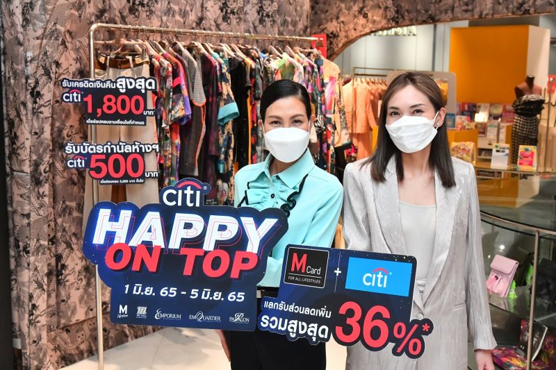 ห้างสรรพสินค้ากลุ่มเดอะมอลล์ ร่วมกับ ธนาคารซิตี้แบงก์ จัดแคมเปญ“CITI HAPPY ON TOP”มอบโปรโมชั่นพิเศษสำหรับสมาชิกบัตรM Cardและลูกค้าบัตรเครดิตCiti ทุกประเภทแลกรับส่วนลดเพิ่มรวมสูงสุด 36% ระหว่างวันที่ 1-5มิถุนายน 2565 ที่ห้างสรรพสินค้าเดอะมอลล์ทุกสาขา, เดอะมอลล์ไลฟ์สโตร์ ทุกสาขา,เอ็มโพเรียม,เอ็มควอเทียร์ และ พารากอน ดีพาร์ทเม้นท์สโตร์