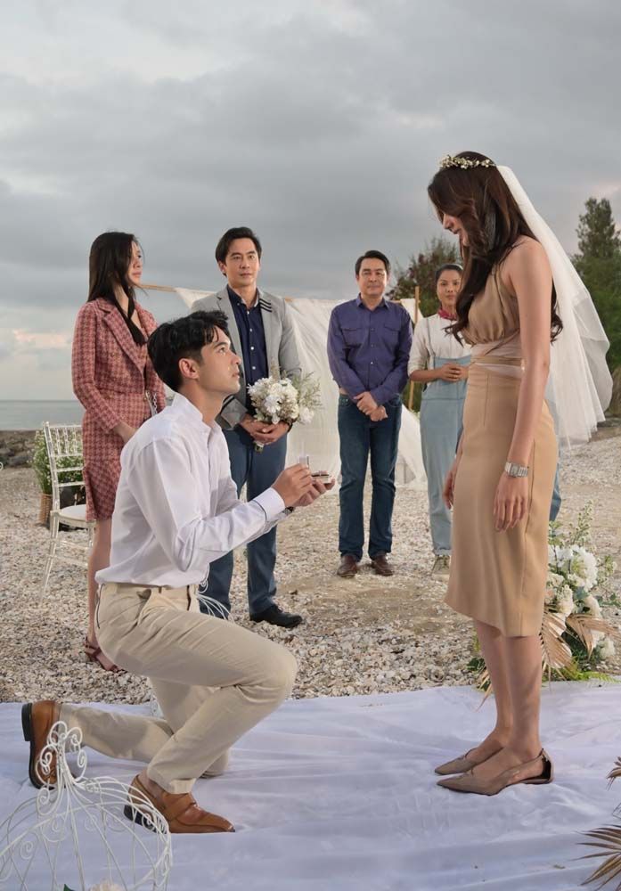 ฉากพร้อมนักแสดงพร้อม ผู้กำกับก็เรียกรวมพลมาซ้อมกันหน้าเซต พอรู้จังหวะกันคร่าวๆ ก็เริ่มลงมือถ่ายทำจริง “แม็กกี้” ปิดตา “พิ้งค์พลอย” แล้วพาเดินออกมา พอเอาผ้าปิดตาออก “น้ำว้า” (ฐาปนีย์ ศุภรัตนาภิรักษ์) ก็สวมเวลให้ว่าที่เจ้าสาวแสนสวย ส่วน “อ๊อฟ” ก็หวานตามบทเป๊ะคุกเข่าบอกรัก “แต่งงานกับพี่นะ” แล้วสวมแหวนให้ ช่วงที่ “อ๊อฟ”กับ “พิ้งค์พลอย” กอดทำซึ้งกันอยู่ จู่ๆ “โก้” ก็ประกาศหมั้นกับ “แม็กกี้” แบบฟ้าฟาดซะงั้น แล้วเอาแหวนมาสวมนิ้วให้ ทำเอาทุกคนงงตาแตก! ฉากชิลๆ แบบนี้รุ่นเล็ก รุ่นใหญ่เขามือโปร เล่นกันหวานเนียนๆ ถูกใจผู้กำกับ ให้ผ่านเต็มสิบไม่หัก แถมยังมีแซวหนุ่ม “โก้” ด้วย “เอาให้สุด..อย่าหยุดเรื่องขโมยซีน” ส่วนพระเอกปากแดงรับลูกต่อทันที “เรื่องบลัฟไม่ต้องบอก โก้แสดงเต็มที่ครับผม” เอาที่สบายใจเลยผู้กองเกิดอะไรขึ้นกับรักสลับขั้ว? ติดตามชมละคร “ปางเสน่หา”วันเสาร์ที่ 18 มิถุนายนนี้ เวลา 20.30 น. ช่อง 7HDกด 35 และ Facebook Live : Ch7HD หรือรับชมย้อนหลัง ได้ทาง BUGABOO.TV