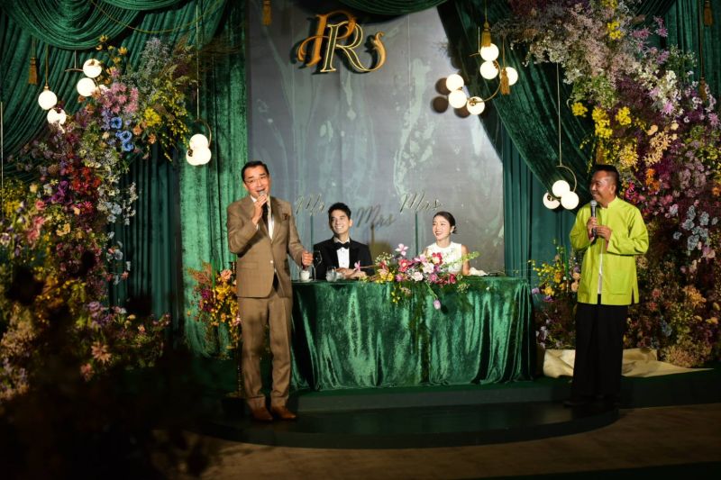 โดยวันนี้มีคนดังในวงการบันเทิงมาร่วมอวยพรกันอย่างอุ่นหนาฝาคั่ง อาทิ เอ ศุภชัย ศรีวิจิตร, วู้ดดี้ วุฒิธร มิลินทจินดา, เสนาลิง สมเกียรติ จันทร์พราหมณ์, ดิว อริสรา ทองบริสุทธิ์, มะตูม เตชินท์ พลอยเพชร, นีโน่ เมทนี บุรณศิริ, ใบเตย อาร์สยาม, ดีเจแมน พัฒนพล กุญชร ณ อยุธยา, เอกกี้ เอกชัย เอื้อสังคมเศรษฐ, โบว์ เมลดา สุศรี, อาเล็ก ธีรเดช เมธาวรายุทธ, พีเค ปิยะวัฒน์ เข็มเพชร, โยเกิร์ต ณัฐฐชาช์, โดนัท มนัสนันท์ พันเลิศวงศ์สกุล, กัน เดอะสตาร์, ตั้ม เดอะสตาร์, รัศมีแข ฟ้าเกื้อล้น, จันจิ จันจิรา จันทร์พิทักษ์ชัย ฯลฯ ท่ามกลางบรรยากาศสนุกสนานของเพื่อนเจ้าบ่าวเจ้าสาวทั้งในและนอกวงการ