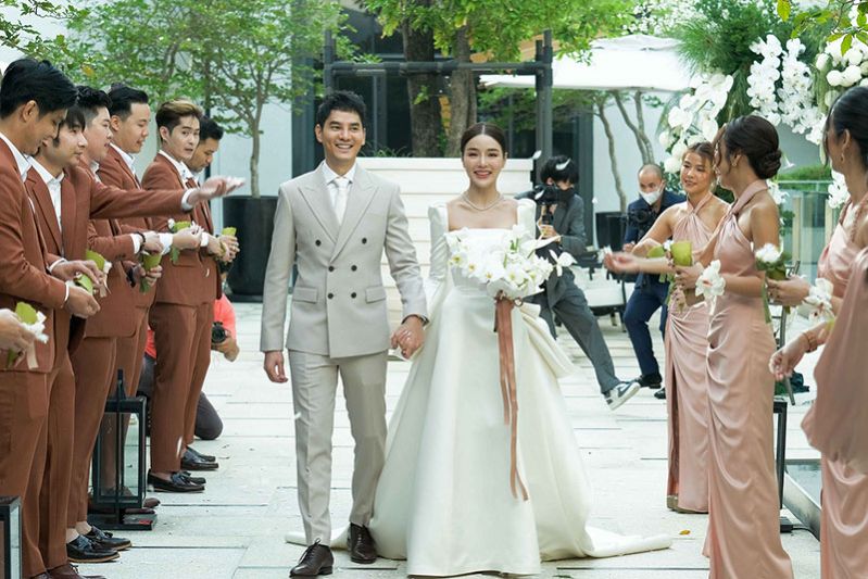 ในส่วนของพิธีเช้า แอร์อยู่ในชุดราตรีสีขาว ส่วนไอซ์อยู่ในชุดสูท จากห้องเสื้อ Monique Wedding และในช่วงบ่ายในวันเดียวกัน แอร์มาในชุดเจ้าสาวเกาะอกสีขาว ผลงานของ VeraWang Bride และไอซ์มาในทักซิโด้ขาว จากห้องเสื้อ PINKY Tailorทั้งนี้มีแขกเหรื่อ เพื่อนสนิทในวงการ ตั้งแต่สมัยรายการสตอร์เบอรี่ชีสเค้ก ตบเท้ามาร่วมแสดงความยินดี อาทิ ตุ๊ก จันจิรา จูแจ้ง, บุ๋ม ปนัดดา วงศ์ผู้ดี และทีมรายการตกมันส์บันเทิง ช่อง 9 อีกด้วย ก่อนจะมีงานเลี้ยงฉลองมงคลสมรสขึ้นในช่วงค่ำวันเดียวกัน ที่ห้องแกรนด์บอลรูม โรงแรมโฟร์ซีซั่นส์ กรุงเทพฯ โดย "แอร์" และ "ไอซ์" ได้เปิดใจถึงความรู้สึกที่มีต่อกันว่า “เป็นความรักที่ส่งเสริมกันและกันให้เป็นคนที่ดีขึ้น เตรียมมีทายาทปลายปีนี้ แพลนฮันนีมูนต่างประเทศ เจ้าบ่าวทุ่มสุดตัวมอบแหวนเพชรเม็ดเป้งให้กับเจ้าสาวน้ำหนักกว่า 6 กะรัต ด้านแอร์สวยจัดเต็มกับชุดเจ้าสาวทั้งหมด 4 ชุด สมกับเป็นวันที่พิเศษที่สุดในชีวิต”