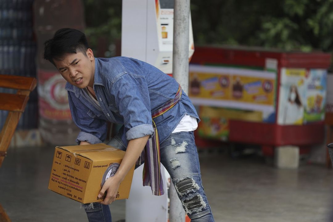 ในฉากเบื้องหลังแสนลำบากของหนุ่มวัยรุ่นหนองงัวน้อย โดย“เกิบ” รับบทโดย ผู้ใหญ่บ้านฟินแลนด์ ลุยเดี่ยวขี่รถสามล้อพ่วงคันเก่ง ทำทีมาส่งน้ำปลาร้านางฟ้าที่ร้านของชำ“โบวี่” รับบทโดย เอมิก้า-เศวตโชติ จันทร์อ่อนซึ่งเป็นเพื่อนของ“ดาว”รับบทโดย วาว-พราวภิชณ์ษา สุนทรารักษ์ซึ่งเป็นโอกาสเหมาะเมื่อ โบวี่ ไม่อยู่เกิบ จึงรวบรวมความกล้าจะได้โชว์หล่อ ให้ ดาว ประทับใจจึงเก็กหล่อเอียงคอตลอดเวลา แถมกางเกงยีนส์ขาเดฟที่ตั้งใจใส่มาอวดสาวนั้น ยังออกฤทธิ์! ตึงเกินเหตุจน เกิบ ถึงขั้นเป็นตะคริวจริง! โดยฉากนี้ ต้อม-เสรีย์ หล้าชนบทปิ๊งไอเดีย อยากจะแซววัยรุ่นในโลกโซเชียลสมัยนี้ แม้จะถ่ายรูป 100 ภาพ ก็จะมีมุมหล่อสวยของตัวเองเพียงมุมเดียว ซึ่ง ผู้ใหญ่บ้านฟินแลนด์ ที่ได้รับโจทย์ก็จัดให้เกินร้อย