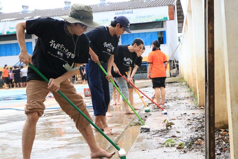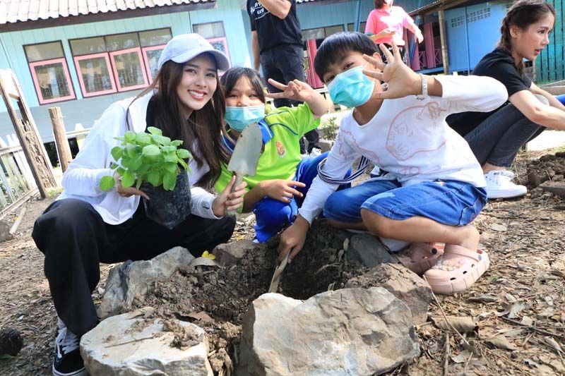 นำโดยประธานมูลนิธิเรวัต พุทธินันทน์ คุณอรุยา พุทธินันทน์ และ คุณสิดารัศมิ์ พุทธินันทน์, คุณเดียววรตั้งตระกูล ประธานเจ้าหน้าที่ฝ่ายปฏิบัติการช่องวัน 31 รวมถึงนักแสดงจากช่องวัน 31 อีกมากมาย อาทิ โชแปง นุชอินทรา, แต๊ง-เอกดนัย, ยูจีน-ธนาณัติ, เคน เลิศสิทธิชัย, อ๋อลี่-ตติยา, อาย-ปียาณัฐ, เบลล์-กฤตปภา รวมไปถึงทีมผู้ประกาศจากวันบันเทิง พัทโตะ-พัทธ์ และผู้ประกาศข่าวจาก GMM25 แนส-ทิฆัมพร,ปาล์ม-นิติรัฐ และ กฤต เจนพานิชการ นอกจากนั้นยังมีศิลปินในเครือแกรมมี่ นำทีมโดย ต่าย-อรทัย จาก Grammy Gold, MONICA จาก White Music, วง LEMONY จาก Sanamluang Music และวง New Travelers จาก Genie records เป็นตัวแทนลงพื้นที่ทำความสะอาด ซ่อมแซ่มทาสีรั้วปลูกพืชผักสวนครัว รวมถึงแจกจ่ายมื้ออาหารกลางวันให้กับเด็กๆ และสร้างความสุขผ่านเสียงเพลง แจกของรางวัลให้กับชาวบ้านในพื้นที่