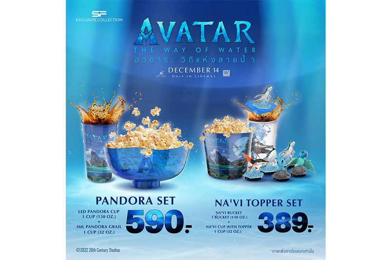 โรงภาพยนตร์ในเครือ เอส เอฟต้อนรับการกลับมาของภาคต่อมหากาพย์ภาพยนตร์ที่ทำรายได้สูงสุดตลอดกาล ที่คนทั้งโลกรอคอยมากว่า 13 ปีAvatar: The Way of Water (อวตาร: วิถีแห่งสายน้ำ)ส่งคอมโบเซทสุดพรีเมี่ยม“AVATAR 2 COMBO SET ” (อวตาร 2 คอมโบ เซท)” มาให้แฟนภาพยนตร์ได้สะสม ถึง 2 เซท ได้แก่