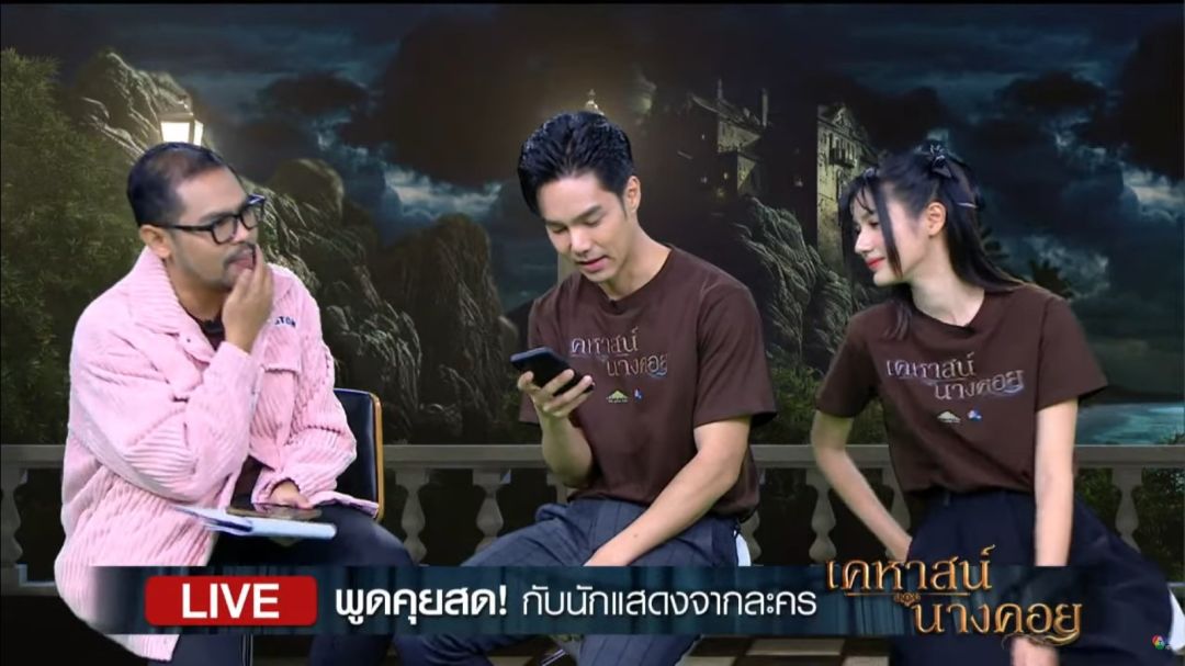 บรรยากาศในช่วงไลฟ์มีแฟนละครตัวยง ออนไลน์เข้ามาชมไลฟ์สดกันเพียบ! ซึ่งนักแสดงทั้ง 4 คนก็ไม่ทำให้ผิดหวัง ปล่อยมุกกันสุดพลัง พร้อมเมาท์กันสนุก เล่าเบื้องหลังการถ่ายทำทั้งแบบขำขัน และแบบลึกลับอย่างที่ไม่เคยเปิดเผยที่ไหนให้แฟนละครฟัง โดยพิธีกรสายฮา นิวหนวด-ธนิศ แก้วนาค มาทำหน้าที่ช่วยขยี้ และชวนแฟน ๆ ร่วมสนุก ลุ้นรับเสื้อสวย ๆ จากละคร เคหาสน์นางคอย กับปฏิทินช่อง 7HD ไปเป็นที่ระลึกอีกด้วยงานนี้ บูม ทำหน้าที่เป็นพ่อสื่อสายชงคู่ โอ๊ต-แบมแบม ให้จิ้นนอกจอแบบเข้มเต็มคาราเบล ด้วยการเผยสตอรี่น่าสงสัยของคู่นี้ ช่วงที่ถ่ายทำละครด้วยกันให้แฟน ๆ ฟังแบบไม่กั๊ก