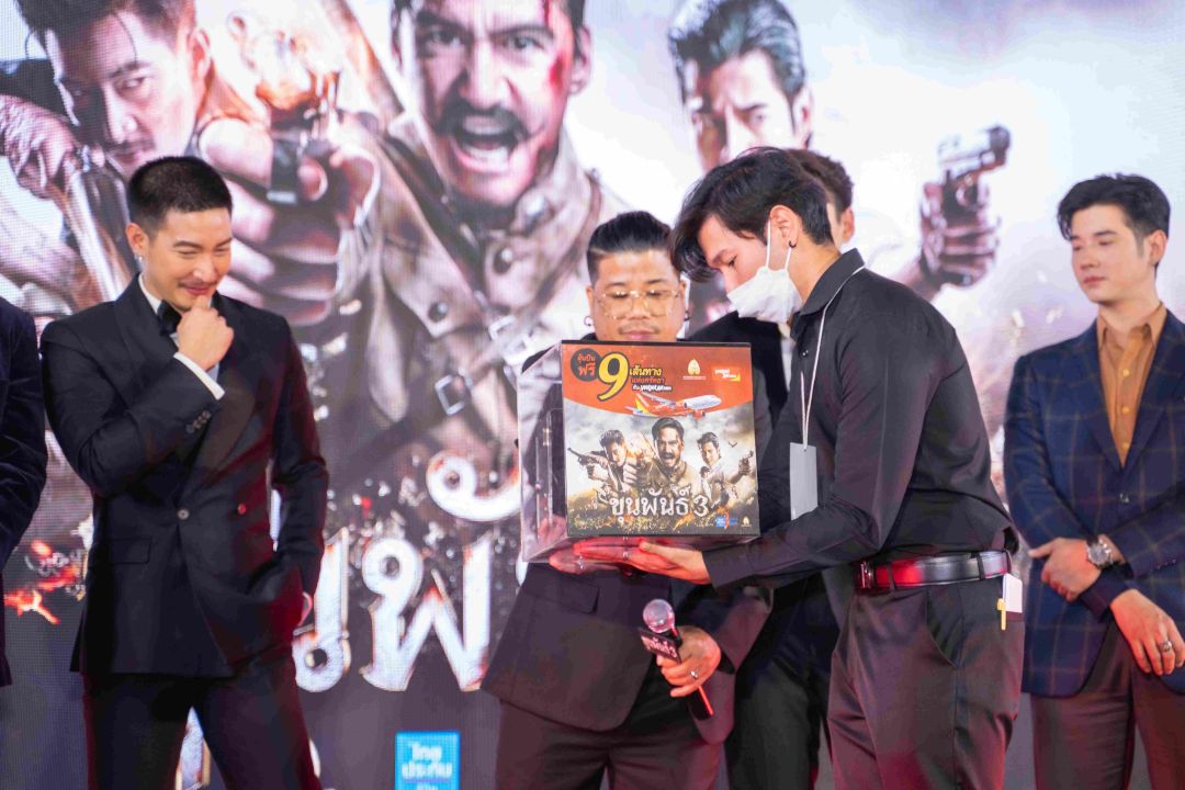 ประสบการณ์ และเรื่องราวความน่าสนใจ ตลอดจนความทุ่มเทสุดชีวิตในทุกองค์ประกอบที่ทำให้ “ขุนพันธ์ 3” กลายเป็นอีกหนึ่งบันทึกครั้งสำคัญในประวัติศาสตร์ภาพยนตร์ไทย ก่อนจะมีกิจกรรมพิเศษสุดเซอร์ไพรส์สำหรับสื่อมวลชนที่มาร่วมงานรอบปฐมทัศน์นี้ด้วยการจับรางวัลผู้โชคดีได้รับตั๋วเครื่องบินร่วมลุ้นบินฟรี 9 เส้นทางแห่งศรัทธาจาก “สายการบินไทยเวียตเจ็ท” จำนวน 2 รางวัล (รางวัลละ 2 ที่นั่ง)