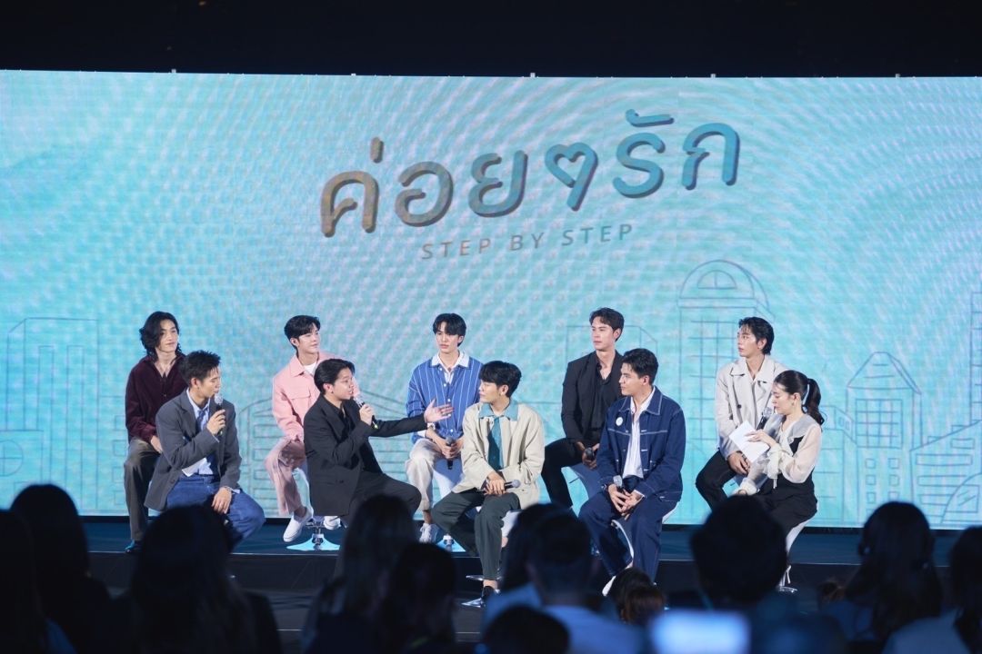 กลายเป็นปรากฎการณ์การครั้งสำคัญ จากนิยายยอดนิยม ที่สร้างกระแสสุดฮอตจากทั้งแฟนๆทั้งไทย และทั่วโลก สู่ซีรีส์มาแรง "ค่อยๆรัก Step By Step"ที่เป็นความร่วมมือระหว่าง บริษัท Dee Hup House (ดี ฮัพ เฮ้าส์ จำกัด) โดย "บอส" อนุสรณ์ ลิ้มประเสริฐ และ "จัสติน โสตางกูร" จากบริษัท JUSTUP (จัสท์อัพ) จำกัด พร้อมด้วย นักแสดงหนุ่ม "อัพ" ภูมิพัฒน์ เอี่ยมสำอาง ฝีมือกำกับของ "ตี๋" บัณฑิต สินธนภารดี ที่จะเริ่มออกอากาศในวันอังคารที่ 18 เมษายน 2566 เวลา 23.00-24.00 น. ทางช่อง ONE 31 และดูย้อนหลังได้ที่ WeTV ล่าสุดจัดงานแถลงข่าวเปิดตัวซีรีส์ "ค่อยๆรัก Step By Step"ขึ้น ณ ICONSIAM PARK ชั้น 2 ไปแล้ว นำทีมโดยนักแสดงนำ อาทิ แมน - ธฤษณุ สรนันท์, เบน - บัญญพนต์ ลิขิตอำนวยพร, เซนต์ - ปารมี มหัทธนาดุลย์, วิน - ธีราเมท พีรบวรสุข ร่วมด้วย อาตุ่ย - พุทธชาด พงศ์สุชาติ, บรูซ - ศิริกร คณานุรักษ์, ซอโซ่ - นัทธ์หฤทัย อัครกิจวัฒนากุล, ป๊อปปี้ - รัชพงศ์ อโนมกิติ และ แพรว-หัสสยา อิสริยะเสรีกุล ร่วมงาน