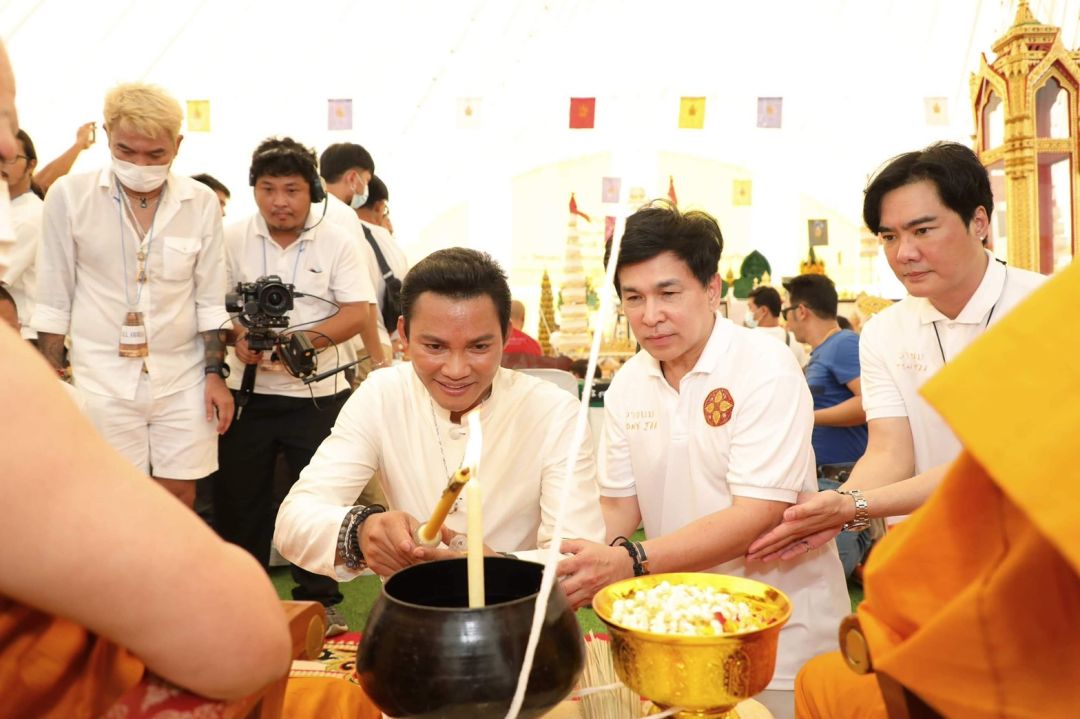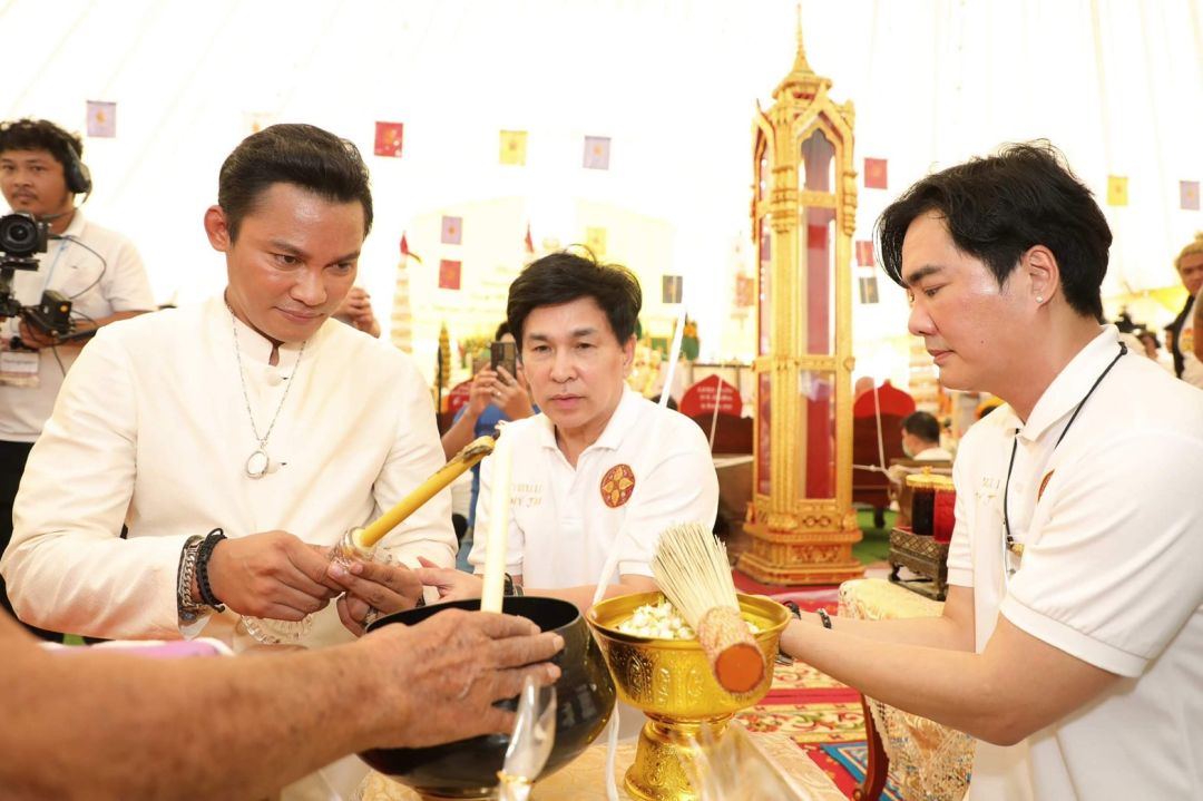 เมื่อถึงฤกษ์ดีพราหมณ์จึงเริ่มทำพิธีบวงสรวง เป็นการจัดทำตามแบบฉบับโบราณ จากนั้นเป็นการขับเสภาประกอบการแสดงนาฏยุทธ์ไทยโดย “จา พนม” เพื่อสักการะครูบาอาจารย์และสิ่งศักดิ์สิทธิ์ ท่ามกลางบรรยากาศของพิธีที่มีความขลังและศักดิ์สิทธิ์ และอีกหนึ่งไฮไลต์ของงานคือ คุณแม่ของ “จา พนม” ได้มาร่วมพิธีในครั้งนี้ด้วย ซึ่ง “จา พนม” ก็ได้ก้มลงกราบแม่ที่ให้พรกับลูกชายที่ได้ทำกุศลยิ่งใหญ่ในครั้งนี้