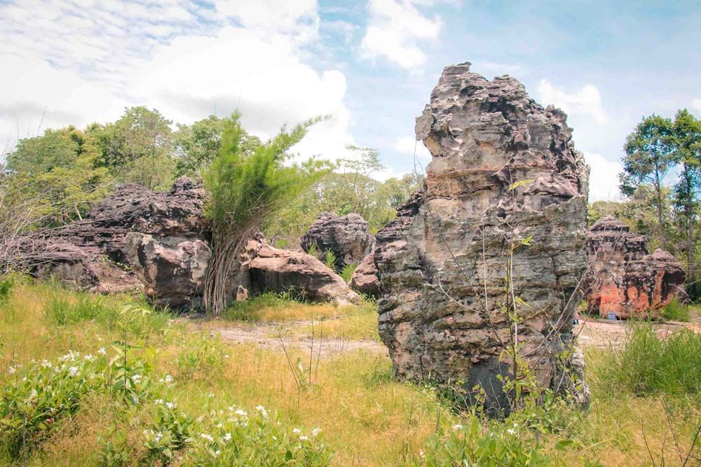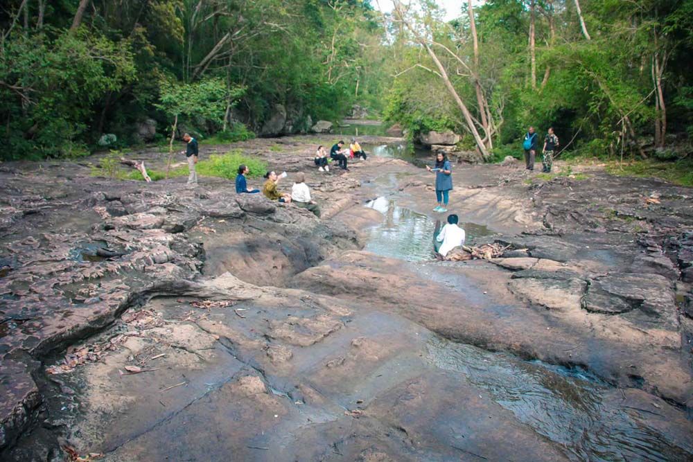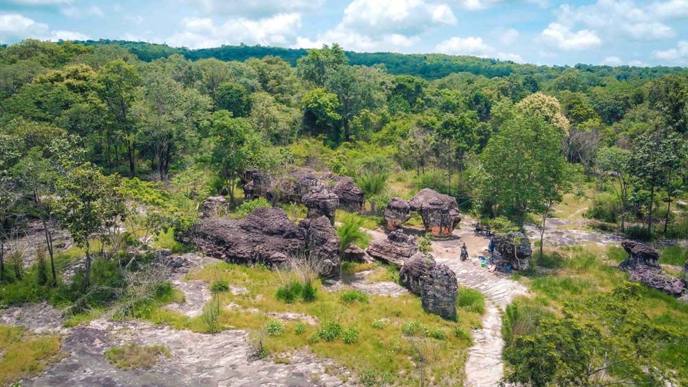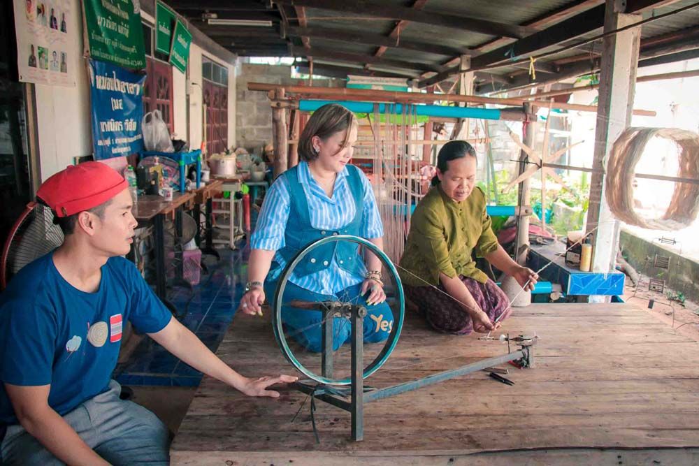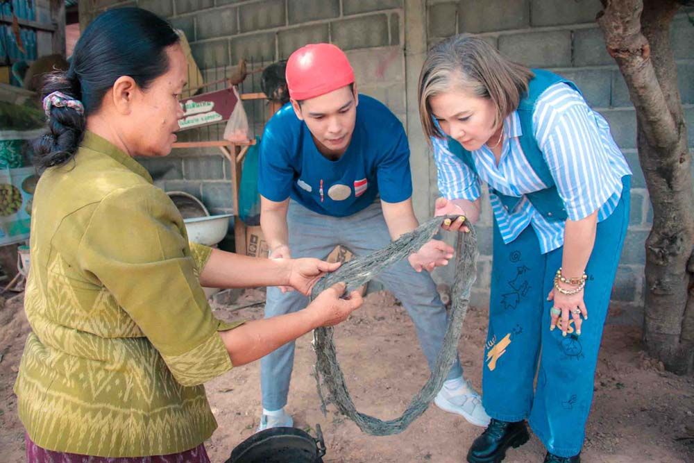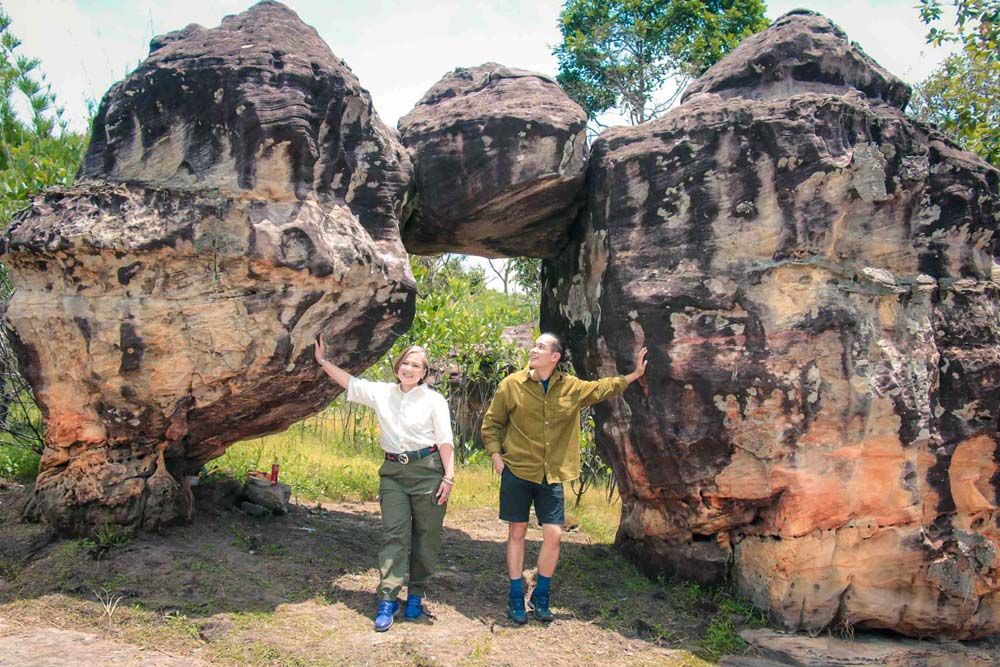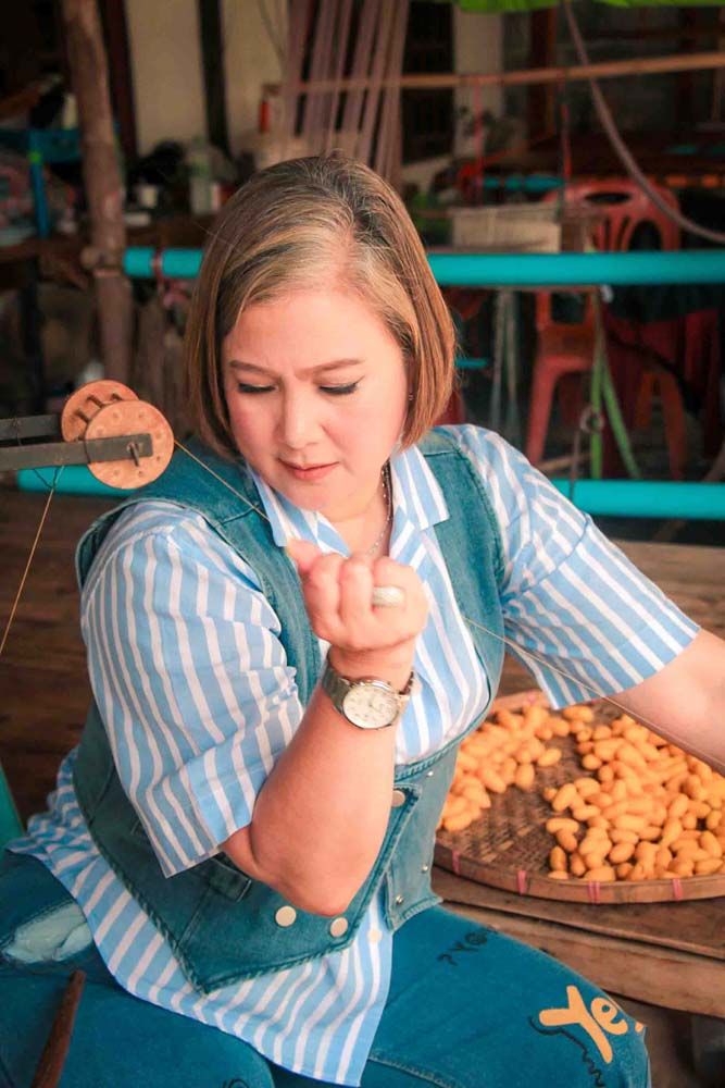 มาเที่ยว จ.อุดรธานี ทั้งที “คุณน้ำผึ้ง, แห้ว” ก็ขอไปให้สุด..คราวนี้พามาอยู่ท่ามกลางแปลงหม่อนเลี้ยงไหมสวยๆ ของกลุ่มวิสาหกิจชุมชน ผลิตเส้นไหมบ้านหนองกุง ต.หนองกุงศรี อ.โนนสะอาด จ.อุดรธานี ซึ่งที่นี่เริ่มปลูกหม่อนเลี้ยงไหม ตั้งแต่ปี 2551 และตั้งกลุ่มวิสาหกิจชุมชนเลี้ยงไหมบ้านหนองกุงขึ้น พันธุ์หม่อนที่ปลูกเป็นพันธุ์บุรีรัมย์ 60 และพันธุ์สกลนคร ที่สำคัญยังเป็นแปลงหม่อนที่เป็นมิตรกับสิ่งแวดล้อมอีกด้วยกว่าจะเป็นผ้าไหมคุณภาพดีบ้านหนองกุง แต่ละขั้นตอนยากแค่ไหน งานนี้ทั้งสองไม่พลาดขอลงสนามเรียนรู้ขั้นตอนผลิตเส้นไหมไปจนถึงการทอผ้าไหมและมัดหมี่ นอกจากนี้ยังมีผลิตภัณฑ์ผ้าไหมไทยหลากหลายลวดลายจำหน่ายอีกด้วย ซึ่งผ้าไหมที่นี่ได้รับการรับรองผลิตภัณฑ์ผ้าไหมไทยตรานกยูงพระราชทาน การันตีด้วย...จากนั้นกระโดดไปเที่ยวทางธรรมชาติบนผืนป่าชุมชนบ้านโนนสวรรค์ กับความเป็น Unseen ของแหลธาตุ ด้านในของผืนป่าบนพื้นที่ 2 ไร่มีก้อนหินทรายรูปร่างแปลกตาที่เกิดขึ้นตามธรรมชาติ ซึ่งเป็นความมหัศจรรย์ที่ธรรมชาติสร้างขึ้นและปิดท้ายคลายร้อน.. ด้วยการเที่ยวน้ำตกคอยนาง อยู่ในวนอุทยานน้ำตกคอยนาง อ.หนองแสง สามารถเดินเที่ยวชมธรรมชาติของน้ำตกได้ถึง 2 ชั้น น้ำตกแห่งนี้มีความสูง 20 เมตร สายน้ำไหลลดหลั่นลงมาตามชั้นหิน เหมาะเป็นที่พักผ่อนและเล่นน้ำมากๆ ยังเย็นฉ่ำไม่สะใจ..ก็มาต่อที่น้ำตกธารงาม เป็นธารหินยาวประมาณ 200 เมตรลงเล่นน้ำได้สบายๆ