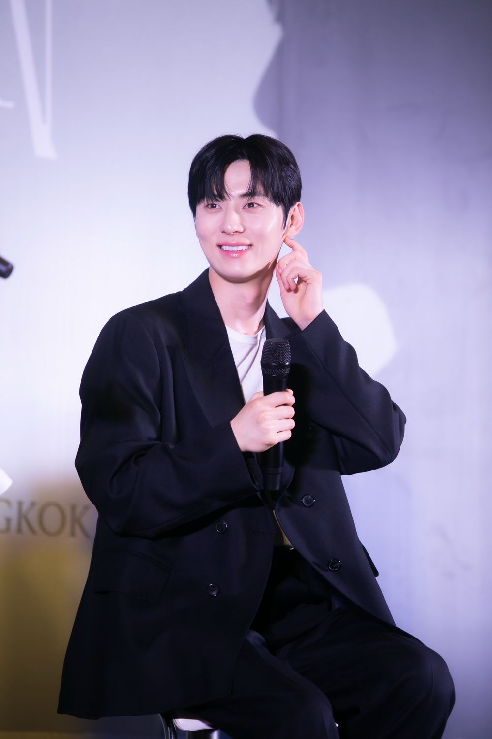 เพียงก้าวแรกที่ฮวังมินฮยอนย่างเท้าขึ้นสู่เวทีรัศมีความหล่อแบบราชนิกูลเกาหลีก็แผ่กระจายไปทั่วห้องแถลงข่าวพร้อมเปิดโอกาสให้สื่อมวลชนรัวชัตเตอร์ถ่ายภาพก่อนจะกล่าวทักทายเป็นภาษาไทยว่า“สวัสดีครับฮวังมินฮยอนครับ”ด้วยสำเนียงไทยชัดเป๊ะ
