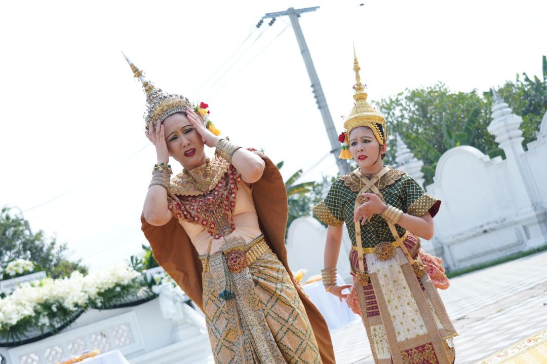เป็นฉากที่ ชฎาพร(จั๊กจั่น)และ ชฎาพลอย(หนูนา)นําขบวนรถเข็นศพของสินี(พิม)สมาชิกของตระกูลศุภนาฏจรัล(กบ ทรงสิทธิ์),ชฎาเพชร(นนนี่ ณัฐชา), รัชพล(อ่ำ อัมรินทร์), คณา(ฝน สรวงสุดา) และ ประไพ(อ๋อม สกาวใจ), ราเมศ(ไผ่ พาทิศ) ปูน(ภูมิ ภูริพันธ์), พัดชา,(แอริน สิรีภรณ์) ตั้งแถวเตรียมนำศพเวียนรอบเมรุธรรม์(นิว วงศกร)ที่ตีระนาดเอกอยู่ ชฎาพรและชฎาพลอยโชว์รําให้สินีเป็นครั้งสุดท้ายแต่จู่ๆตาชฎาพร กลับเห็นสินียืนอยู่ที่มุมหนึ่งที่บันไดเมรุก็ตกใจ