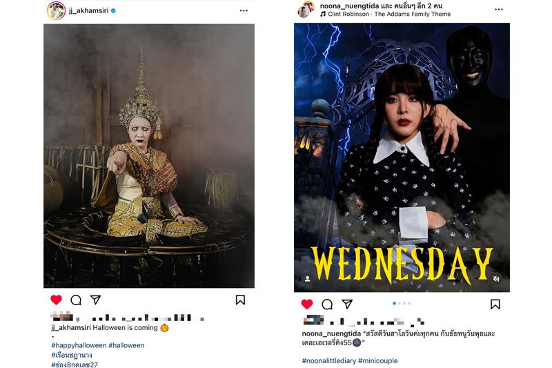 ต่อด้วย“หนูนา หนึ่งธิดา” แต่งผีเวนส์เดย์ผีสาวไฮสคูลสุดเฮี้ยนสไตล์ยุโรปตามภาพยนตร์เรื่องดัง “The Addams Family”ยังจัดเต็ม ทั้งเสื้อผ้า การแต่งตัว หน้าผม อาร์ตเวิร์ก แบบเหมือนเป๊ะทุกจุด โพสต์ลงในอินสตาแกรม @noona_nuengtidaพร้อมแคปชัน“สวัสดีวันฮาโลวีนค่ะทุกคน กับยัยหนูวันพุธและเดอะเอเวอรี่ติง55”เรียกได้ว่าส่งอินเนอร์ความหลอนตามแบบฉบับเวนส์เดย์ แอดดัมส์บอกเลยว่า ทั้งน่ารักทั้งหลอนเลยทีเดียวแถมงานนี้ ยังควงแฟนหนุ่ม“จูเนียร์ กรวิชญ์” มาแต่งเป็นผีทำคอนเทนต์กันแบบจึ้ง ๆ หลอนแพคคู่เข้าไปอีก สมแล้วที่เป็นเจ้าแม่สายคอนเทนต์ตัวจริง สำหรับเธอคนนี้
