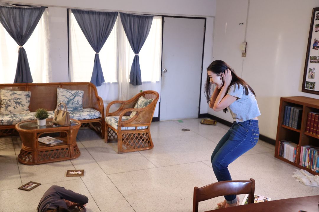 ฉากนี้ถ่ายทำกันที่ สมาคมส่งเสริมสถานภาพสตรีในพระอุปถัมภ์ (ดอนเมือง) เรียกว่าเป็นซีนแรกที่ตัว เดนิสจะได้ระเบิดอารมณ์ ซึ่งถือว่าเป็นจุดพลิกเรื่องครั้งแรก แถมตอนที่ถ่ายทำก็เพิ่งเริ่มเปิดกล้องไปไม่ได้นาน เดนิสจึงค่อนข้างเครียด พยายามทำสมาธิทบทวนบทอยู่ตลอดเวลา จน “พี่หนุ่ย ศุทธสิทธิ์” ผู้จัดและผู้กำกับฯ กลัวน้องจะเครียดเกินไป จึงพยายามผ่อนคลายให้เดนิสไม่ต้องเกร็งหรือกังวล ยิ่งพอได้พี่อุ๋ม นักแสดงรุ่นพี่คอยคุย คอยให้คำแนะนำเทคนิคให้ ก็ทำให้เดนิสสบาย ๆ ขึ้น เรียกว่าแค่ซ้อมบล็อกกิ้งก็ยังเดือดใส่เต็ม จนพี่อุ๋มต้องบอกให้เก็บแรงไว้ตอนเอาจริงบ้าง พี่หนุ่ยเลยทบทวนคิวนัดแนะคิวกล้องนิดหน่อยก็พร้อมเอาจริงเลย ฉากนี้เอาแค่เดนิสระเบิดอารมณ์ใส่พี่อุ๋มพูดบทยาวเป็นหน้าก็สนุกแล้ว เพราะเดนิสใส่เต็มทั้งอารมณ์อิจฉา ริษยา ทะเยอทะยาน เกลียดชัง น้อยใจโชคชะตา ความอยากมีอยากได้ ก็ว่าสุดแล้ว ยิ่งได้พี่อุ๋มส่งอารมณ์ให้ตัวละคร เดนิสก็ยิ่งเดือดถึงขั้นอาละวาดทำร้ายข้าวของทั้งห้องจะกระจุยกระจาย พี่อุ๋มที่พยายามห้าม แต่เดนิสเหมือนระเบิดเกินจนกว่าจะหยุดได้ กรี๊ดเหมือนคนเสียสติพร้อมทำลายล้างทุกอย่างนาทีนี้ไม่สนว่าใคร อาละวาดหมด รวมถึงพี่อุ๋มที่เริ่มจะเอาแรงเดนิสไม่อยู่นาทีที่เข้าไปจับตัวเลยเจอเดนิสสะบัดอย่างแรงจนพี่อุ๋มเซถลาหัวชนขอบโต๊ะ กว่าจะถ่ายฉากนี้เสร็จเรียกว่าเดนิสก็แทบจะหมดแรง หมดเสียง เพราะกรี๊ดไปหลายเทค กรี๊ดจนสะเทือนไปทั้งตึกที่ถ่ายทำ พี่หนุ่ย ผกก. บอกหน้ามอนิเตอร์ดูกันเดือดมาก แถมพี่อุ๋มยังชมว่าเดนิสดีมาก อนาคตยังพัฒนาได้อีกไกล