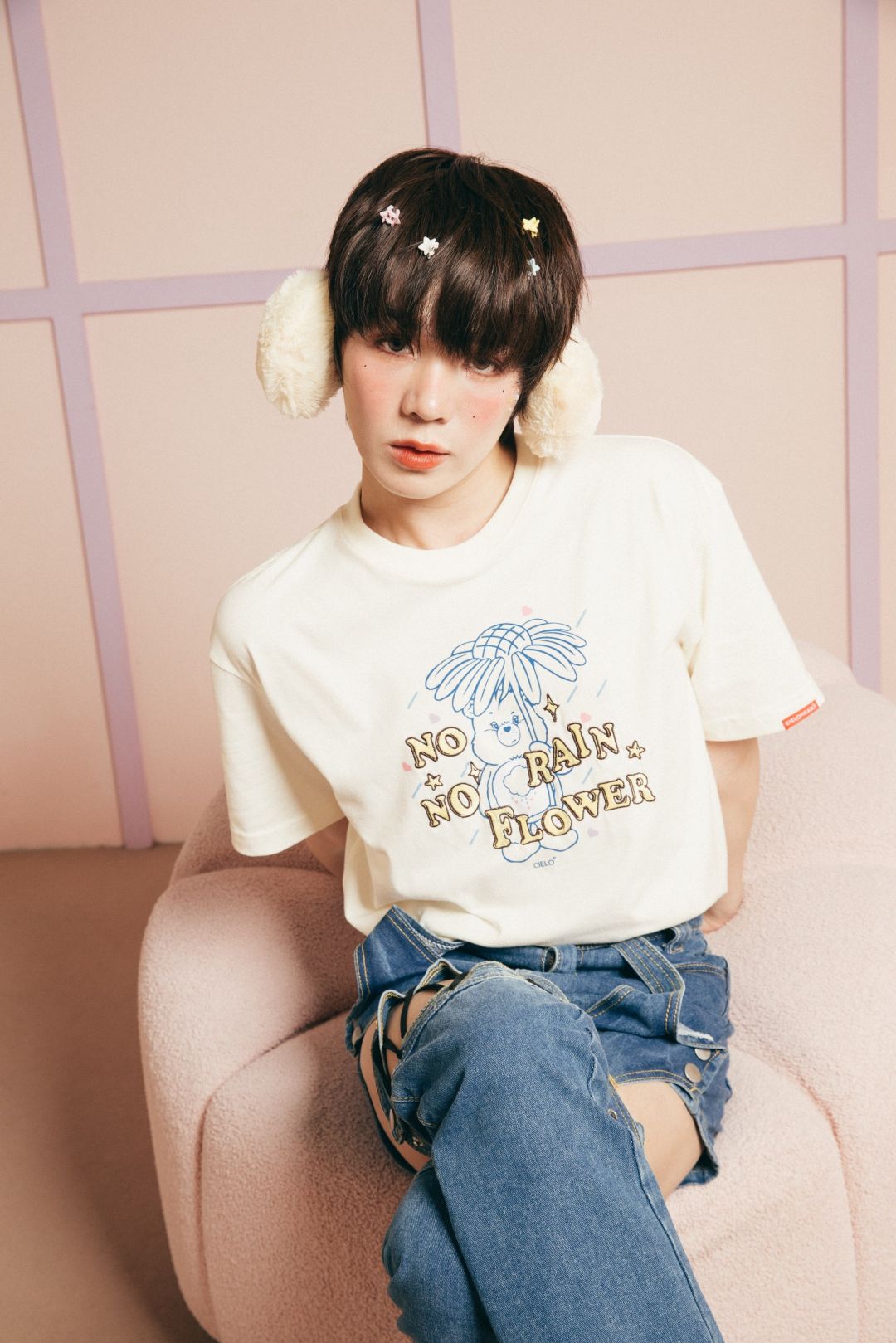 โดยหนุ่ม เอิร์ธ เผยว่า “ก่อนจะมาเป็น Cieloheart เอิร์ธก็คิดว่าจะใช้ชื่อว่าอะไรที่จะทำให้คนนึกถึงเรา ให้คนนึกถึง Cooheart และโดยส่วนตัวเป็นคนที่ชอบท้องฟ้ามาก ก็เลยเข้าไปหาคำว่าท้องฟ้าในภาษาอื่นดู แล้วไปเจอคำว่า Cielo ในภาษาสเปน แปลว่าท้องฟ้าที่ขึ้นต้นด้วย C เหมือนคำว่า Cooheart เอิร์ธเลยเอาคำว่า Cielo มาบวกกับคำว่า Heart ให้มันมีเอกลักษณ์คนจะได้นึกถึงเราเวลาใส่เสื้อผ้าแบรนด์เราครับ โดย Cieloheart ทำออกมาแล้ว 3 คอลเลกชันก่อนหน้านี้ ซึ่งก็ได้รับการตอบรับที่ดีมากครับ จนมาถึงคอลเลกชันล่าสุดที่พิเศษยิ่งกว่าเพราะเราได้มีโอกาสคอลแลปส์กับแบรนด์ดังอย่าง Care Bears เป็นอะไรที่เอิร์ธดีใจมากที่ทางแบรนด์ติดต่อมา ด้วยตัวเราเองก็ชื่นชอบ Care Bears อยู่แล้วเรียกได้ว่ามีครบเกือบทุกสีเลย รู้สึกเหมือนฝันเป็นจริงเลยครับ ที่ได้ร่วมงานกับแบรนด์ดังระดับโลกเช่นนี้ ซึ่งในการคอลแลปส์ครั้งนี้มีคอนเซ็ปต์ที่ใช้ชื่อว่า “No Rain, No Flower” โดยคอลเลกชันนี้จะมีทั้งหมด 5 แบบด้วยกันครับ แบ่งเป็นเสื้อฮู้ด 2 แบบ และเสื้อยืด 3 แบบ ซึ่งทั้ง 5 แบบนี้จะมีสีและลายที่แตกต่างกันทั้งหมด เอิร์ธเลือกใช้สีโทนกลางๆ อย่างสีครีม สีกรม และสีดำ ให้ลูกค้าสามารถใส่ได้ทุกเพศทุกวัย และยังเพิ่มความน่ารักสดใสเข้าไปให้ต่างจากคอลเลกชันที่ผ่านมาด้วยการทำสีม่วง สีเบจ เพื่อคงความน่ารักสดใสตามแบบฉบับของ Care Bears ให้ลูกค้าได้เลือกซื้อกันอีกด้วย ซึ่งคอลเลกชันนี้เราจะเปิดให้พรีออเดอร์พร้อมกันในวันที่ 25 พฤศจิกายน ถึง 12 ธันวาคม นี้ ผ่าน 2 ช่องทางการขาย โดยช่องทางแรกผ่านเว็บไซต์ของสตูดิโอวาบิซาบิ https://www.studiowabisabi.co.th/shop-page/ เรามีบริการขนส่งแบบ World Wide นะครับ ชาวต่างชาติก็สามารถสั่งซื้อได้ หรือสามารถสอบถามข้อมูลเพิ่มเติมผ่านทาง Line Official @CieloHeart (เติม @ ข้างหน้า) ได้ด้วยเช่นกัน เอิร์ธขอฝาก Cieloheart X Care Bears ไว้ด้วยนะครับ คอลเลกชันนี้ตั้งใจมากจริงๆ เอิร์ธดูแลและควบคุมการผลิตด้วยตัวเองตั้งแต่ขั้นตอนแรกเพื่อให้ทุกคนได้สิ่งที่ดีที่สุด และเอิร์ธเชื่อว่าทุกคนที่ได้สินค้าไปจะต้องประทับใจในคุณภาพแน่นอนครับ”