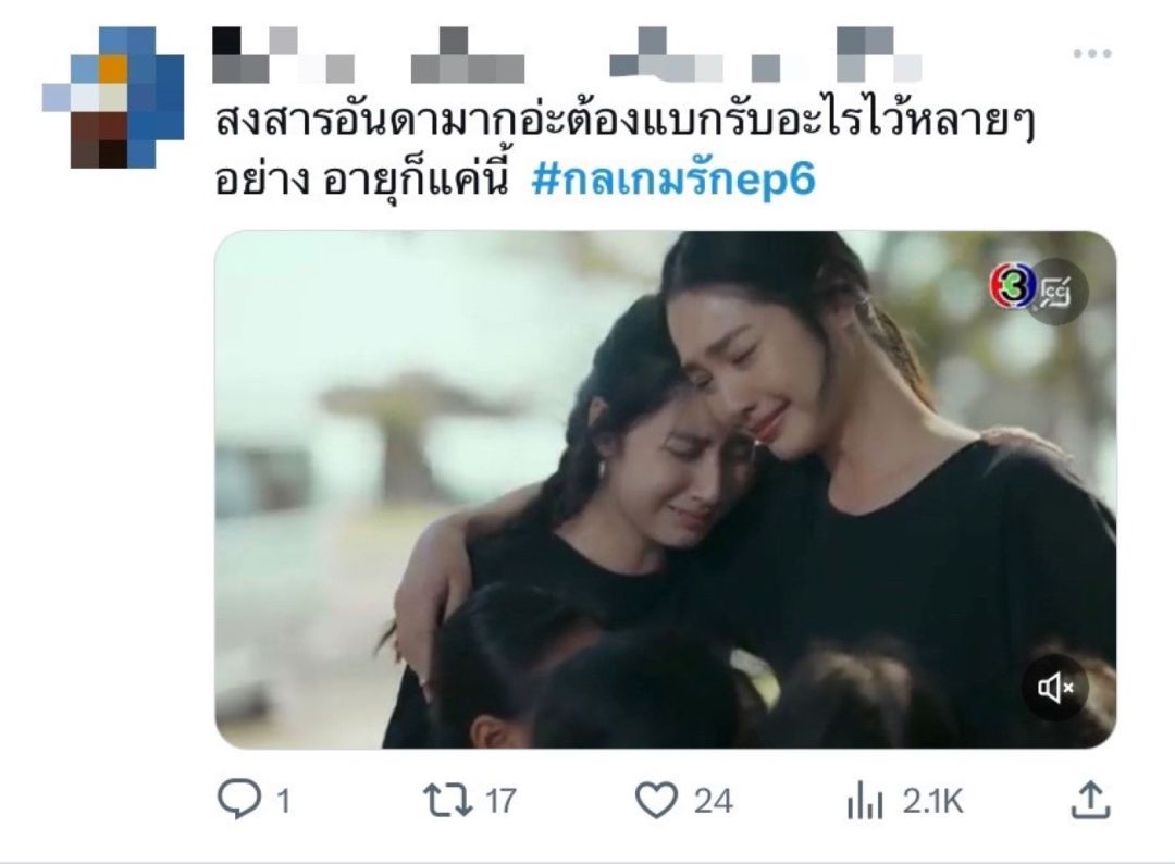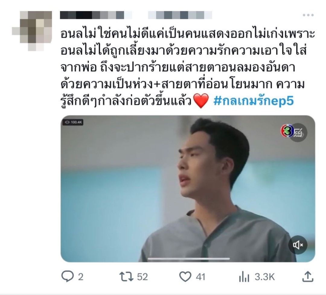 ได้รับความสนใจไปไม่น้อยเลยทีเดียวกับละคร “กลเกมรัก”ทางช่อง 3 นำทัพแสดงโดยพระนางนิวเจน ในสองอีพีล่าสุด “กลเกมรัก EP.5-6”ทำคนดูปรับอารมณ์ไม่ทัน สุข เศร้า ดราม่า และยังมีฉาก“อู๋-มิ้นท์”ที่เคมีแรงชวนจิ้น แถมเรื่องราวในละครยังเข้มข้นทำคนดูอินจัดจนสามารถคว้าเรตติ้งรวมทั่วประเทศ 3.05ส่วนในกลุ่มผู้ชมกรุงเทพฯ คว้าไปได้4.21และกลุ่มผู้ชมอายุ 15 ปี ขึ้นไป หรือ กลุ่ม 15 BU+ (Bangkok and Urban) ทำไปได้ 3.64เรียกได้ว่ากำลังไต่ระดับความปังไปเรื่อย ๆ