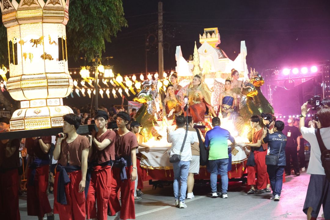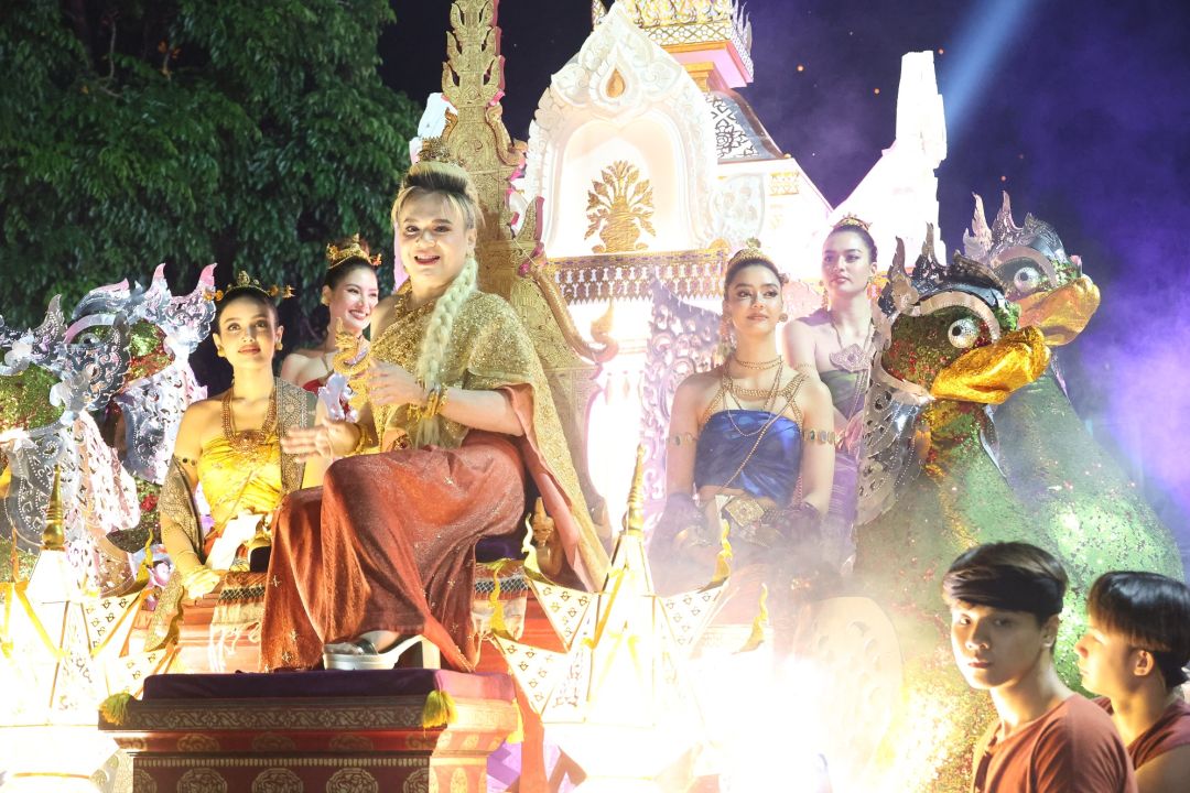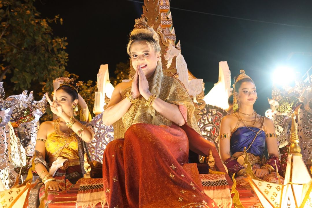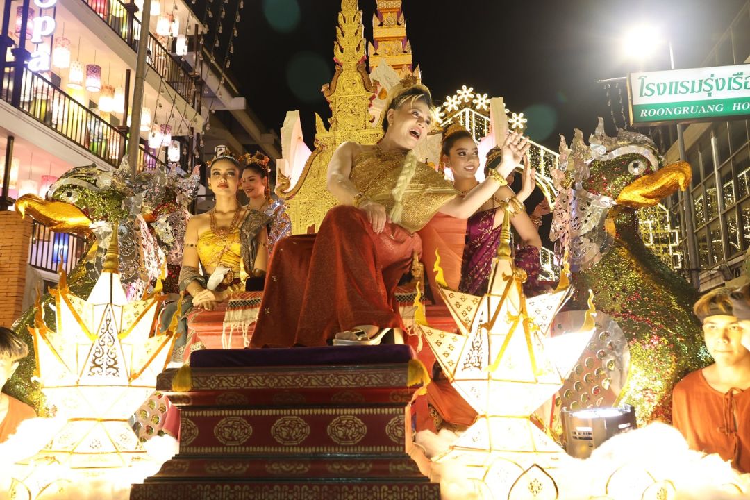 โดย เอ ศุภชัย แต่งชุดไทยสวยงาม นั่งบนรถแห่ขบวนกระทงใหญ่ มีเหล่านางงามนั่งด้วยอีก 4 คน คือ แอนชิลี สก็อต-เคมมิส , อแมนด้า ชาลิสา ออบดัม, พรฟ้า ปุณิกา กุลสุนทรรัตน์ และ วีนา ปวีนา ซิงห์ โดยหน้าขบวน มีเหล่านางรำ และทีมนักแสดงแต่งชุดไทย ร่วมเดินขบวน ได้แก่ จิณณ์ จิณณะ นวรัตน์, โม อมีนา พินิจ, พล พูลภัทร อัตถปัญญาพล, รัศมีแข ฟ้าเกื้อล้น ,มด นันทิยา สุวรรณแสวง และสองเด็กปั้นของพี่เอ คือ ทาฆิ อ่องลออ กับ ดล นภดล ทิพวัฒน์ เรียกว่ายกขบวนจากกรุงเทพฯ ไปร่วมงานยี่เป็ง ชุดใหญ่เลยทีเดียว