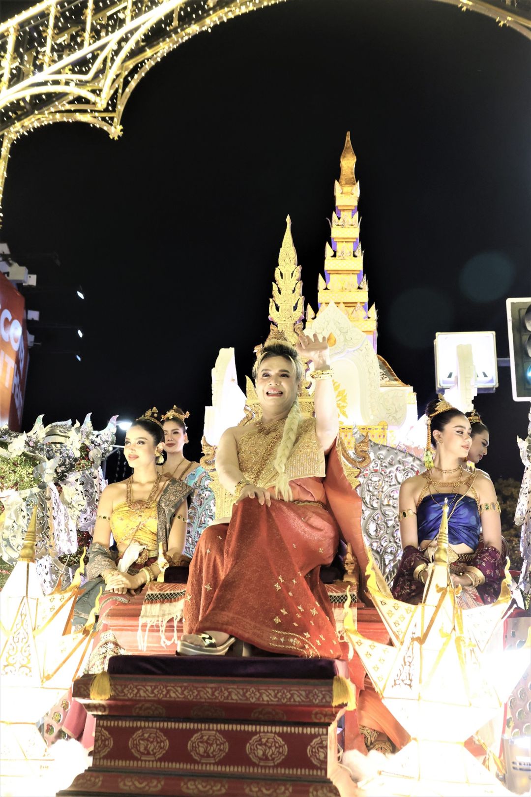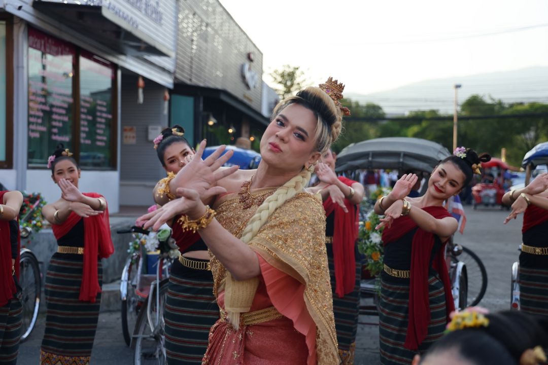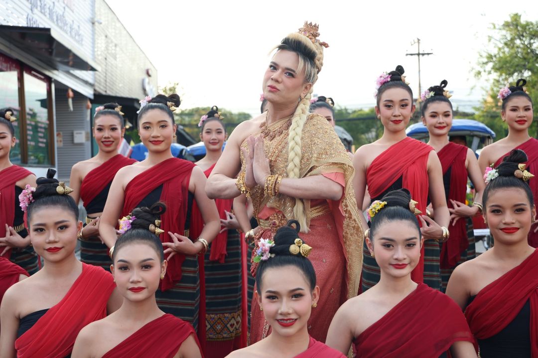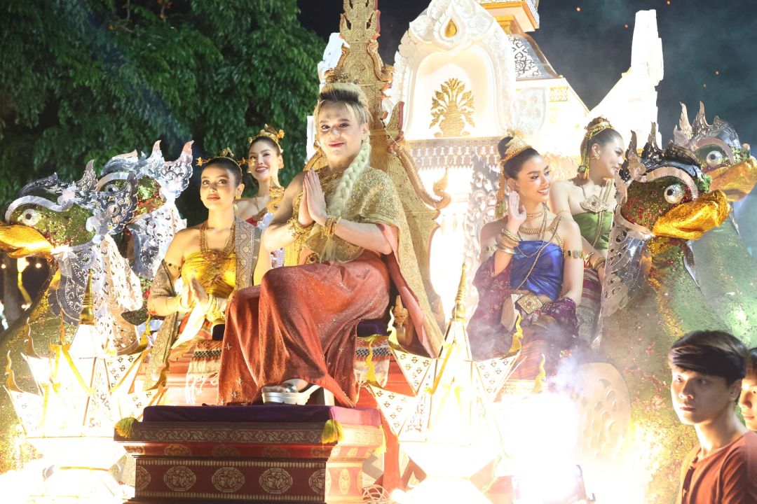 โดย เอ ศุภชัย แต่งชุดไทยสวยงาม นั่งบนรถแห่ขบวนกระทงใหญ่ มีเหล่านางงามนั่งด้วยอีก 4 คน คือ แอนชิลี สก็อต-เคมมิส , อแมนด้า ชาลิสา ออบดัม, พรฟ้า ปุณิกา กุลสุนทรรัตน์ และ วีนา ปวีนา ซิงห์ โดยหน้าขบวน มีเหล่านางรำ และทีมนักแสดงแต่งชุดไทย ร่วมเดินขบวน ได้แก่ จิณณ์ จิณณะ นวรัตน์, โม อมีนา พินิจ, พล พูลภัทร อัตถปัญญาพล, รัศมีแข ฟ้าเกื้อล้น ,มด นันทิยา สุวรรณแสวง และสองเด็กปั้นของพี่เอ คือ ทาฆิ อ่องลออ กับ ดล นภดล ทิพวัฒน์ เรียกว่ายกขบวนจากกรุงเทพฯ ไปร่วมงานยี่เป็ง ชุดใหญ่เลยทีเดียว