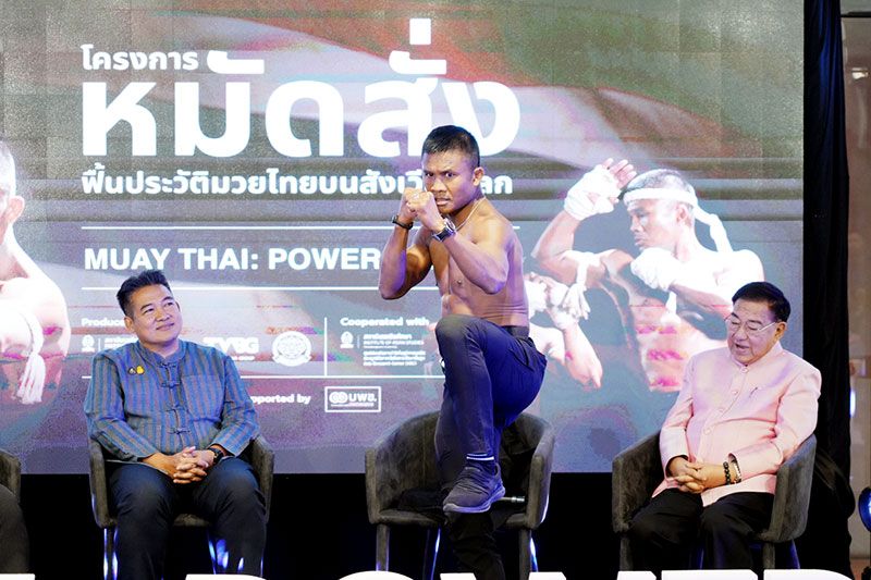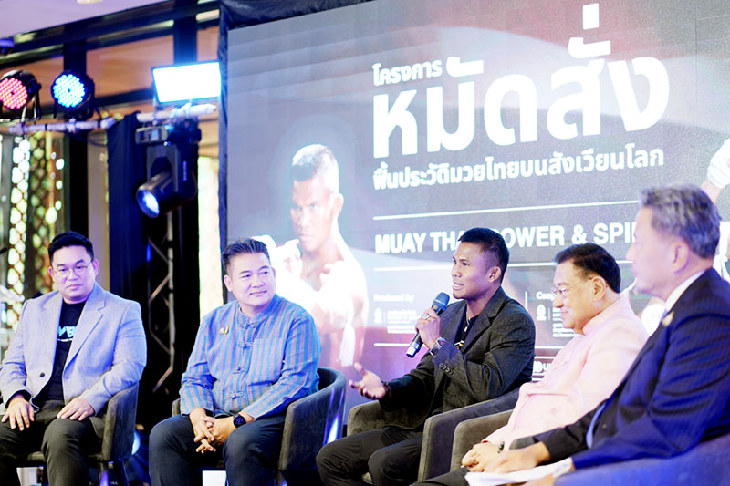 จากภาครัฐ ภาคเอกชน ได้แก่ บริษัท ทีวีบูรพา จำกัด บริษัท บัญชาเมฆ จำกัด และภาคีร่วมเผยแพร่ผลงานสู่ระดับนานาชาติ ได้แก่ ศูนย์ส่งเสริมการวิจัยในภูมิภาคเอเชียของมูลนิธิเกาหลีเพื่อการศึกษาขั้นสูงสถาบันเอเชียศึกษา จุฬาลงกรณ์มหาวิทยาลัย กระทรวงวัฒนธรรม และกระทรวงการต่างประเทศแถลงข่าวเปิดตัวโครงการ “หมัดสั่ง : ฟื้นประวัติมวยไทยบนสังเวียนโลก” และสารคดี Muay Thai : Power & Spirit เมื่อวันอังคารที่ 28 พฤศจิกายน 2566 เวลา 13.00-14.30 น. ณ อุทยาน 100 ปี จุฬาลงกรณ์มหาวิทยาลัย โดยมีเป้าหมายสำคัญในการผลักดันคุณค่าและเสริมสร้างมูลค่าเพิ่มทางเศรษฐกิจให้แก่ “มวยไทย” สู่เวทีโลก พร้อมทั้งส่งเสริมผู้ประกอบการภาคเอกชนของไทยที่เกี่ยวข้อง ให้มีศักยภาพในการแข่งขันกับนานาประเทศ