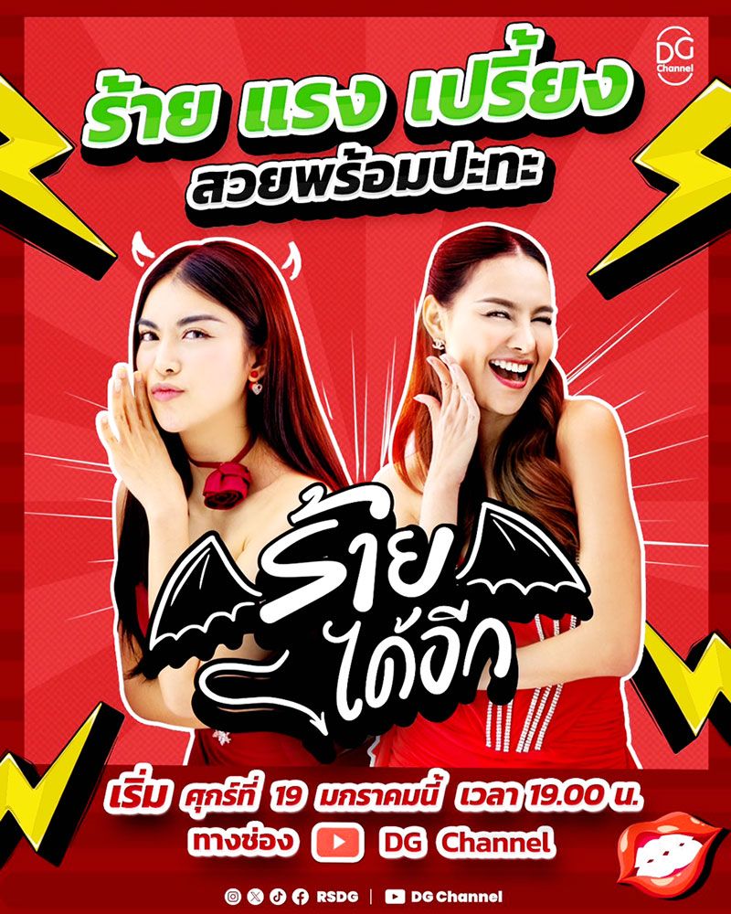 ต่อด้วย รายการร้ายได้อีก ที่พร้อมเปิดโหมดร้าย แรง เผ็ด แบบไม่จำกัดเพศ กับ 2 สาวสวยฉบับตัวแม่ตัวร้าย จากผู้คว้าตำแหน่งชนะเลิศจากรายการ นางร้ายไทยแลนด์ “ชมพู อทิตา พยัคฆ์” จับมือนางร้ายหน้าสวยรุ่นพี่ “พลอย-พีรชาดาขุนรักษ์” ที่พร้อมพาแฟนด้อมดาวร้ายไปล้วงลึกประสบการณ์ ของบรรดาแขกรับเชิญตัวท็อปไอดอลคนรุ่นใหม่ผ่านคำถามสุดซี้ด ในวันศุกร์ที่ 19 มกราคม พร้อมออกร้าย 1 ทุ่มตรง (ออกอากาศทุกวันศุกร์ เวลา 19.00 น. ทางยูทูบ DG channel และทางเพจเฟซบุ๊ก นางร้ายไทยแลนด์)