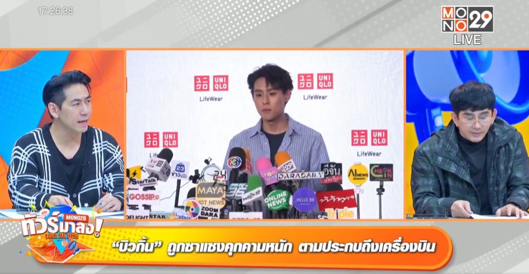 ส่งท้ายเดือนมกราคมด้วยสามพิธีกรคนชอบทัวร์ลง ได้แก่ พชร์-อานนท์, เพชรจ้า-วิเชียร และเป็กกี้-ศรีธัญญาในรายการ "ทัวร์มาลง" โดยในวันพุธที่ 31 มกราคมประเดิมข่าวบันเทิงเอาใจแฟนคลับศิลปิบหนุ่มชื่อดัง บิวกิ้น-พุฒิพงศ์อัสสรัตนกุลหลังถูก ซาแซงแฟน ตามติดชีวิตส่วนตัวรบกวนศิลปินจนเกินเบอร์ โผล่ประกบยันที่นั่งบนเครื่องบิน พิธีกรเป็กกี้ เล่าความหมายของซาแซงแฟนคือแฟนคลับที่มีพฤติกรรมตามติดชีวิตเพื่อเข้าใกล้ศิลปิน“เข้าขั้นรุกล้ำความเป็นส่วนตัว สร้างความรำคาญให้ศิลปิน บางคนดักรอบริเวณลานจอดรถ หน้าบ้าน หน้าคอนโด ตามติดจนออกแนวหน้ากลัว ทำให้ดาราหรือศิลปินรู้สึกไม่ปลอดภัย”ก่อนหน้านี้ทั้งสองหนุ่มคู่จิ้น บิวกิ้น และ พีพี-กฤษฏ์ก็เคยโดนซาแซงแฟนตามไปที่สาธารณะต่าง ๆ มาแล้ว แต่ก็ไม่เคยเจอถึงขั้นจองไฟล์ทบินที่นั่งใกล้ติดกับตนเอง จนทั้งสองต้องขอย้ายไปอยู่ที่นั่งชั้นประหยัดแทนเพื่อความเป็นส่วนตัว พิธีกร พชร์ เล่าข่าวว่าทั้งสองค่อนข้างตกใจ “น้องเขาเผยว่าก็ดีใจนะเวลามีแฟนคลับมาตาม แต่มันก็ต้องมีเส้นของความพอดีและโอกาสที่เหมาะสม แต่กลุ่มนี้ตามแบบฮาร์ดคอร์ ตามตั้งแต่จุดเช็คอินยันที่นั่งข้าง ๆ รู้สึกว่ามันโหดไปนิด และเขาก็เป็นชาวต่างชาติด้วย”พิธีกร เพชรจ้า เสริมว่าให้ลองจินตนาการว่าถ้าการถูกตามตลอดแล้วไม่มีใครมาช่วยเบรก“ถ้าเกิดเข้าสามารถตามเข้ามาในห้องน้ำได้จะเป็นอย่างไร มันรุกล้ำความเป็นส่วนตัวเกินไป”พิธีกร เป็กกี้ แนะว่าเจอเมื่อพร้อมดีกว่าค่ะแบบนี้