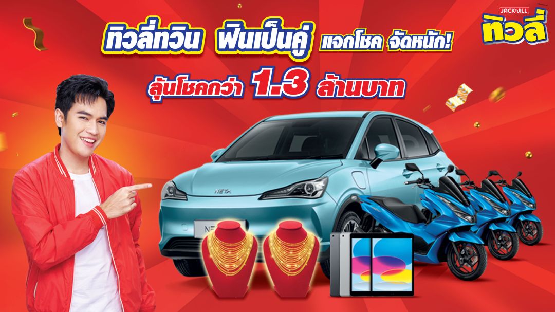สำหรับกิจกรรม “ทิวลี่ทวิน ฟินเป็นคู่แจกโชค จัดหนัก”แจกรางวัลใหญ่สุดพิเศษ รถยนต์ไฟฟ้า NETA V 1 รางวัลมูลค่า 550,000 บาท , มอเตอร์ไซค์ Honda PCS160 พร้อมบัตรน้ำมัน มูลค่า 1,000 บาท รวม 4 รางวัลมูลค่ารวม 353,600 บาท , iPad 10 64gbแจกเป็นคู่ รางวัลละ 2 เครื่อง รวม 7 รางวัล มูลค่ารวม 222,600 บาท, สร้อยคอทองคำ 1 สลึง แจกเป็นคู่ รางวัลละ 2 เส้น รวม 14 รางวัล มูลค่ารวม 490,700 บาท และบัตรเติมเงินทรูมันนี่มูลค่า 500 บาท แจกเป็นคู่ รางวัลละ 2 ใบ รวม 70 รางวัล มูลค่ารวม 70,000 บาท รวมทั้งสิ้น 96 รางวัล มูลค่ารวมทั้งสิ้นกว่า 1.3 ล้านบาท