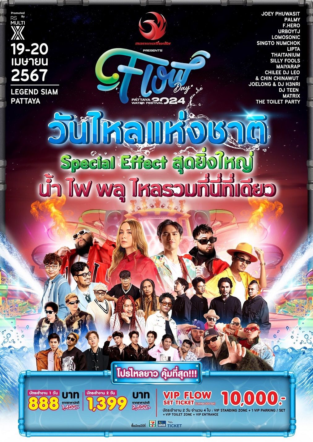 หลังจากที่ อาร์เอส มัลติเอ็กซ์ ภายใต้ บริษัท อาร์เอส มัลติมีเดีย แอนด์ เอ็นเตอร์เทนเมนท์ จำกัดในเครือ อาร์เอสกรุ๊ป จัดอีเว้นท์วันไหลแห่งชาติ กับงาน ลอตเตอรี่พลัส presents FLOW DAY PATTAYA WATER FESTIVAL 2024ในวันที่ 19 - 20 เมษายน 2024ล่าสุดขยายเวลาขายบัตร Early bird กันแบบจุกๆ อีกหนึ่งเดือนไปเลย สำหรับคนที่พลาดจากรอบแรก เดือนนี้ห้ามพลาดเด็ดขาดเปิดจำหน่ายบัตรอีกครั้ง ตั้งแต่วันนี้ - 20 เมษายน เท่านั้น! บัตรมีจำนวนจำกัด