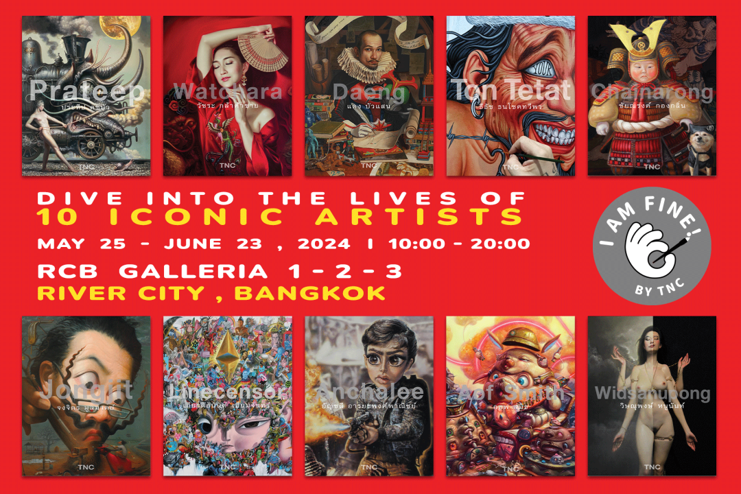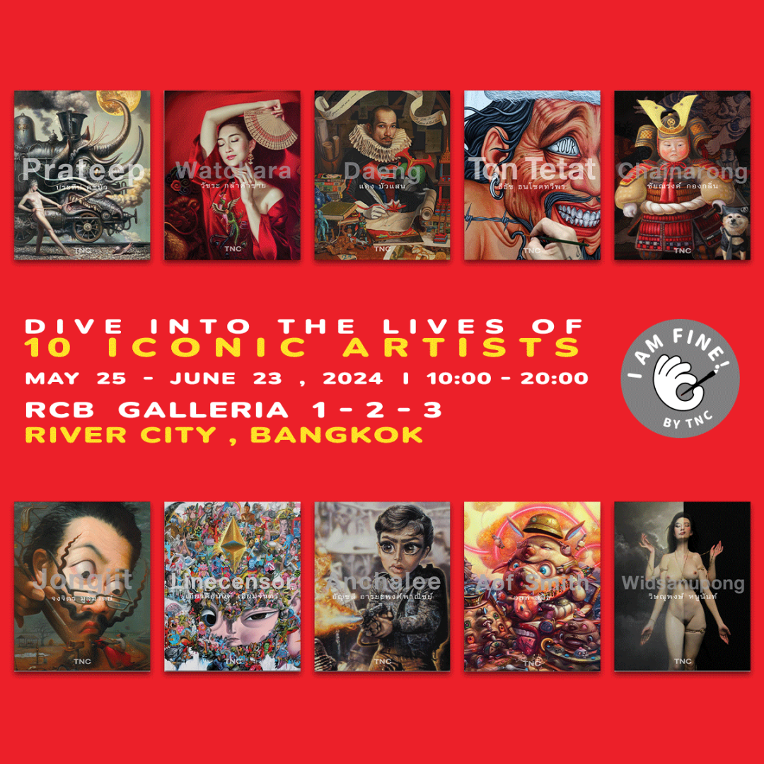เตรียมพร้อมนับถอยหลังสู่หนึ่งในนิทรรศการงานศิลป์ที่ไม่ควรพลาดI AM FINE !DIVE INTO THE LIVES OF 10 ICONIC ARTISTS นิทรรศการศิลปกรรมเปิดตัวหนังสือชีวิต 10 ศิลปินแถวหน้าของเมืองไทย ได้แก่ ประทีป คชบัว / วัชระ กล้าค้าขาย / แดง บัวแสน / ธีธัช ธนโชคทวีพร / ชัยณรงค์ กองกลิ่น / จงจิตร มูลมาตย์ / เกียรติอนันต์ เอี่ยมจันทร์ / อัญชลี อารยะพงศ์พาณิชย์ / ออฟ สมิธ และ วิษณุพงษ์ หนูนันท์ กับครั้งแรกที่มาร่วมกันจรดปากกาเล่าเรื่องราวการเดินทางต่อสู้เพื่อความฝันบนเส้นทางศิลปะกว่าจะมาเป็นตัวตนบนผืนผ้าใบผ่านตัวหนังสือที่จัดพิมพ์สองภาษา (ไทย-อังกฤษ)ซึ่งมีมุมมองและรายละเอียดของผลงานชิ้นสำคัญที่นำมาจัดแสดงให้ชมฟรี!! อีกด้วย