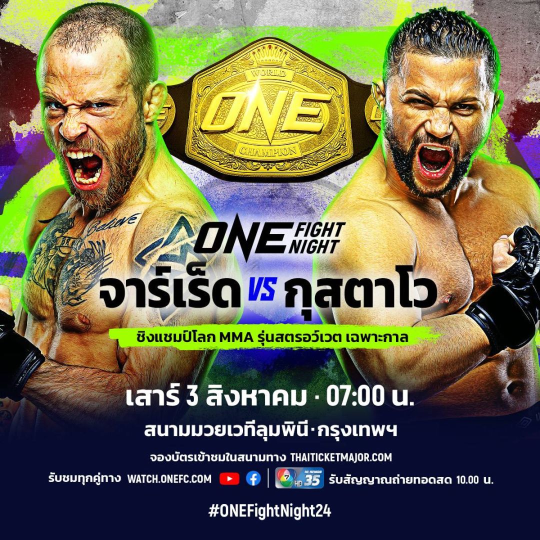 จากนั้นเช้าวันเสาร์ที่ 3สิงหาคมเชียร์มันต่อเนื่องกับศึกใหญ่ONE FIGHT NIGHT 24 แอ็กชันมันถึงใจ พร้อมชิงเข็มขัดแชมป์โลกถึง 2 คู่ คู่เอกเป็นการชิงตำแหน่งแชมป์โลก MMA รุ่นสตรอว์เวต เฉพาะกาลจาร์เร็ด บรูกส์อดีตราชันของรุ่นนี้ ดวลนักสู้ไซส์มินิชาวคิวบา กุสตาโว บาลาร์ตขณะที่คู่รองชิงแชมป์โลก ONE ปล้ำจับล็อก รุ่นอะตอมเวต โดยราชินีคนปัจจุบัน แดเนียล เคลลีป้องกันตำแหน่งครั้งแรกกับนักกีฬา BJJ สาวชื่อดัง เมซซา บาสโตสจากบราซิลและห้ามพลาดกับการร่วมส่งใจเชียร์ 6 ตัวแทนนักชกชาวไทย นาบิล อานาน, เฟอร์รารี แฟร์เท็กซ์, เด็ดดวงเล็ก วันของโอม MBK, นักรบ แฟร์เท็กซ์, แรมโบ้เล็ก ฉ.อจลบุญและ อาลีฟ ส.เดชะพันธ์ ที่พร้อมใจโชว์ผลงานบนเวทีระดับโลก