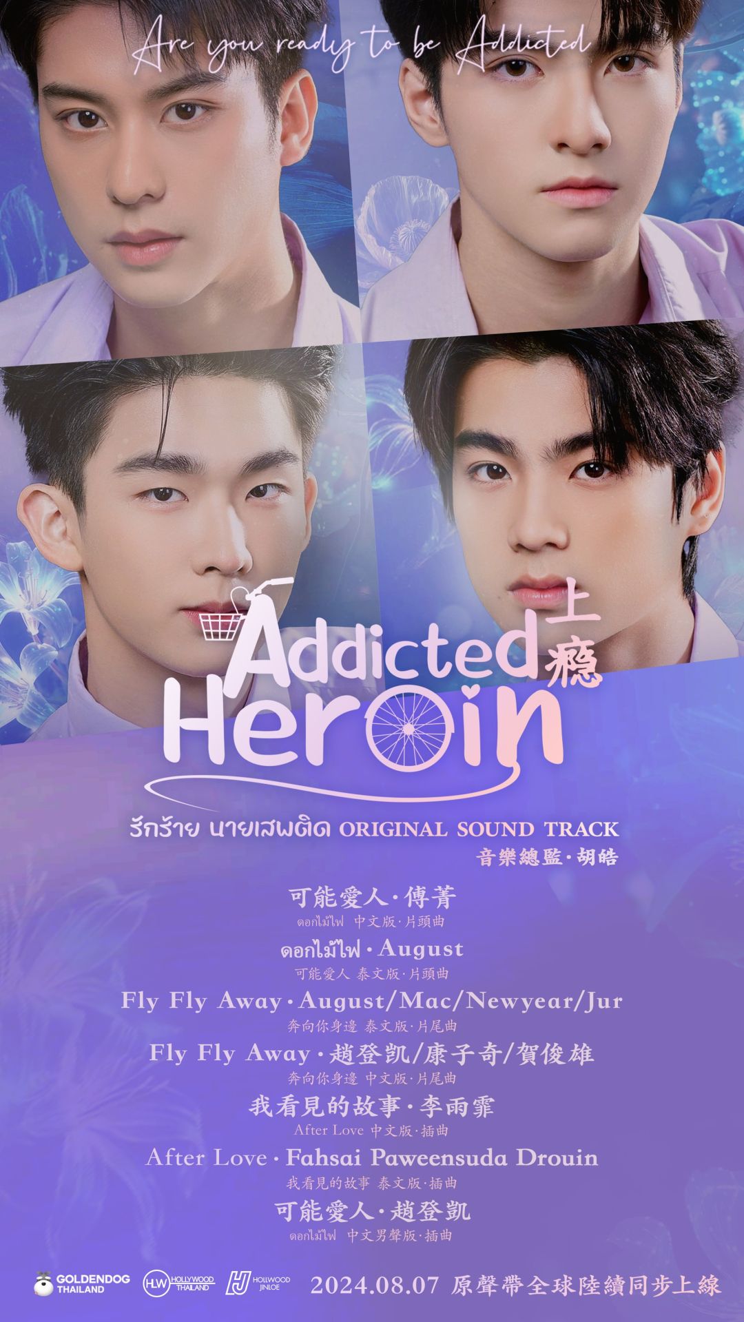 ซึ่งทั้ง 3 เพลงนี้ก็ได้นักร้องดังมาร่วมร้องในเวอร์ชันภาษาจีนสร้างความเวิลด์ไวด์กับแฟน ๆ ต่างชาติโดยเฉพาะในประทศจีน โดย 1. เพลงดอกไม้ไฟ 烟火ร้องนำโดย 傅菁(Fu Jing) ฟู จิง (火箭少女101) นักร้องหญิงจากรายการดังProduce 101ที่มีผู้ติดตามกว่า 12 ล้านคน, 2. เพลง Fly fly away ร้องนำโดย 赵登凯 ( Zhao- deng -kai ) จ้าวเติลข่าย康子奇( Kang zi Qi )คาง จื่อฉี 贺俊雄 ( He-Jun-Xiong) เฮ่อ จวิ้น ฉงศิลปินจากรายการ Chuang เรียลลิตี้ชื่อดังของจีนใน ปี 2019และ 3. เพลง After you 我看见的故事ร้องนำโดย李雨霏 Mia Lu นักร้อง DouYinที่มีแฟนคลับกว่า 7.3 ล้านคน ซึ่งบริษัท Golden Dogเคยสร้างผลงาน OST ที่มีชื่อเสียงให้กับซีรี่ส์ ฟอร์มยักษ์จีน อย่าง The Knockout (狂飙), มธุรสหวานล้ำสลายเป็นเถ้าราวเกล็ดน้ำค้าง (香蜜沉沉烬如霜) และ สายลมนำพารัก (风吹半夏) เป็นต้นและอีกไม่นานเกินรอแฟน ๆ ก็จะได้รับชมซีรีส์ “Addicted Heroin รักร้ายนายเสพติด” ฉบับเต็มให้ได้หายคิดถึง โดยออกอากาศทุกวันอังคาร เวลา 20.00 น. ทาง We TV Thailand ดีเดย์เริ่มตอนแรกในวันที่ 13 สิงหาคมนี้