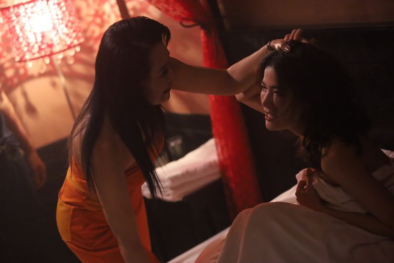 ฉากนี้เป็นตอนที่ดาหวัน(น้ำหวาน-กรรณาภรณ์)ตัดสินใจออกจากหมู่บ้านลานไทรมาหางานทำที่กรุงเทพฯ แต่โชคชะตาดันกลั่นแกล้งดาหวันถูกจับตัวไป แล้วถูกแม่เล้าบังคับให้ไปขายตัว ดาหวันไม่ยอมกราบเท้าอ้อนวอนทั้งน้ำตา แต่ก็ไม่เป็นผล ถูกคุมตัวขังไว้ อดข้าวอดน้ำ สุดท้ายถูกแม่เล้าหลอกแอบใส่ยานอนหลับลงไปในข้าว แล้วบอกดาหวันว่าจะปล่อยตัวถ้ากินข้าวจานนี้หมด ดาหวันไม่ทันโลกหลงเชื่อ ในที่สุดดาหวันก็ถูกข่มขืน