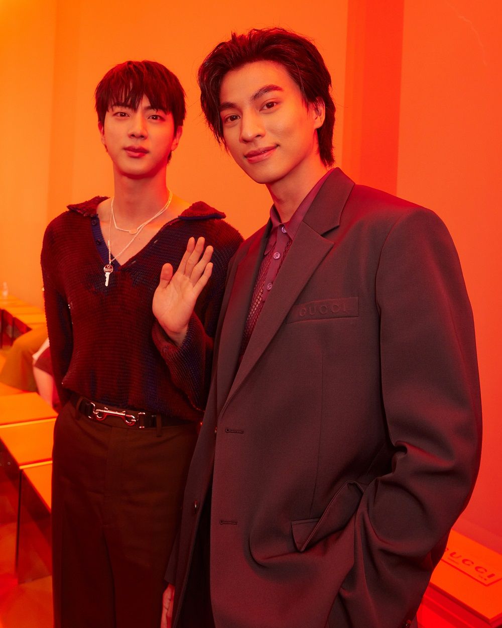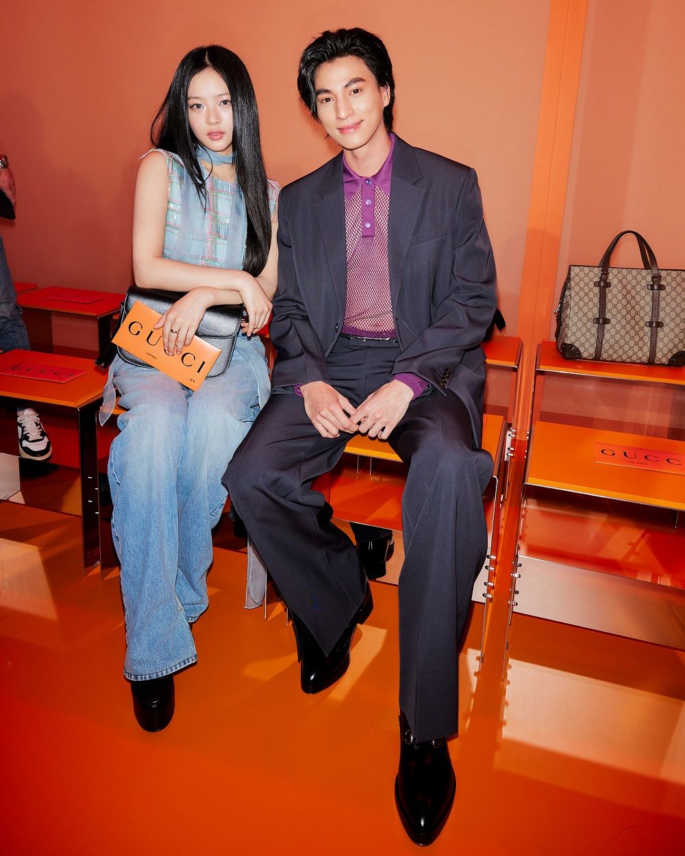 โดยงานนี้ หนุ่มกลัฟปรากฏตัวให้ช่างภาพรัวชัตเตอร์กับลุคโดดเด่นและกร้าวใจสุดๆ ด้วยสูทเข้าเซ็ทสีเทาเข้ม พร้อมดึงดูดทุกสายตาด้วยเสื้อโปโลซีทรูสีม่วงด้านใน คอมพลีตลุคด้วยเข็มขัดประดับฮาร์ดแวร์ Jackic โทนสีเงิน และรองเท้าบู๊ทรุ่น Horsebit นอกจากหนุ่มกลัฟจะนั่งฟร้อนต์โรวชมโชว์ในฐานะ BA Gucci แล้ว เจ้าตัวยังได้กระทบไหล่ศิลปินเกาหลีใต้ชื่อดังระดับโลกอย่าง “จิน” (Jin) แห่งวง BTS และยังได้พบกับนักร้องสาว “ฮันนิ” (Hanni) จากวง New Jeans รวมถึงนักแสดงสาวจากจีน “เถียนซีเว่ย” (Tian Xiwei) อีกด้วย