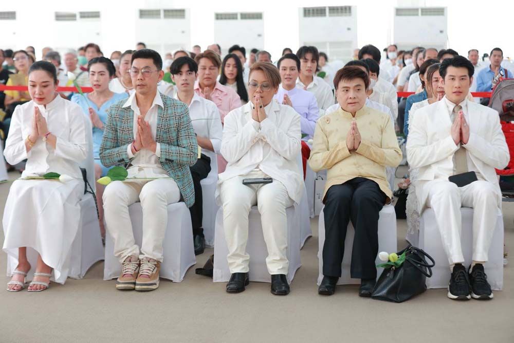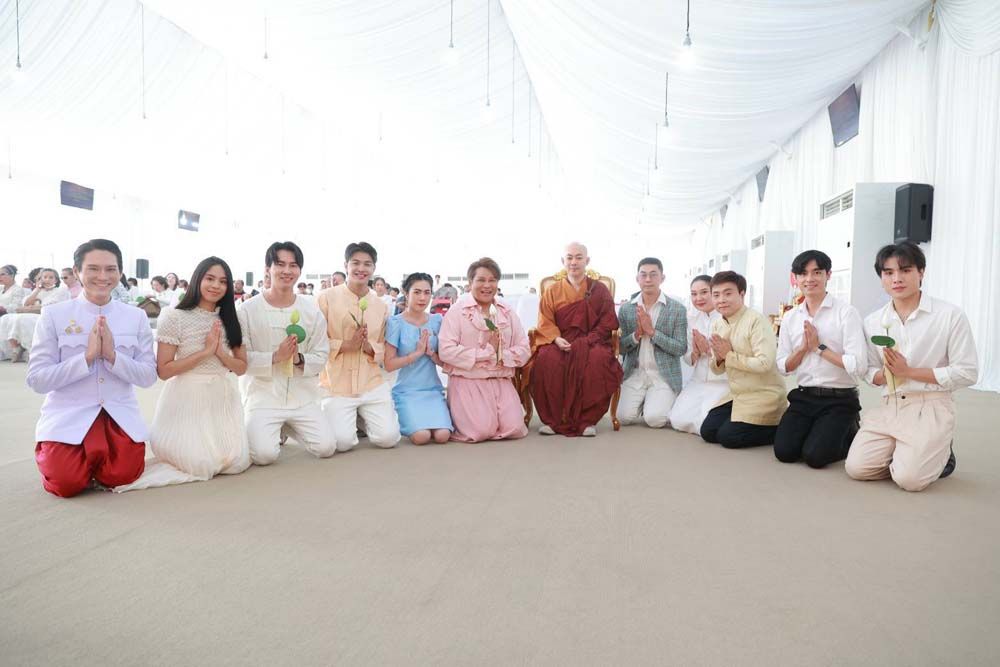 โดยมีคณะกรรมการและศิลปินดารานักร้องนักแสดงได้ร่วมในพิธีดังกล่าว อาทิ ดร.รุ่งทิพย์ ส่องพราย, ดร.ศุภาชัย ผ่องสวัสดิ์ ศิลปินดาราอาวุโส ดวงตา ตุงคมณี, นิภาพร นงนุช, อาจารย์พิทักษ์ โค้ววันชัย และ หมอไวท์ หมอดูโอปป้า เป็นต้น นอกจากนี้ ยังมีกลุ่มศิลปินดาราจิตอาสา และนักแสดงรุ่นใหม่เข้าร่วมพิธี นำทีมโดย ดร.วโรดม ศิริสุข (ดร.ชายแฮ็คส์) นักแสดงจากซีรี่ส์วายแนวพีเรียด “ลอยแก้ว” และซีรี่ส์เด็ก “วัยซ่าส์ท้ามิติ, เล้ง ณัฐพล, แสตมป์ พรวศิน, บี สิทธิกรณ์และ สนุ๊ก สถาพร, มะลิ-บุปผา ศิลปินจากค่าย IDXEntertainment ไม่เพียงแค่นั้นยังมีดาราสายบุญอย่างทอฝัน-ไอณัฐชา, ไม้เอก-สันติภาพ ทองระย้า และ เต้-ปฏิพัทธ์ กันฉาย มิสเตอร์แลนด์สเคปนครปฐม 2025 พร้อมด้วยอดีตดาราตัวแม่อย่าง ดร.ครีม-ธิชาชา บุญเรืองขาว มาพร้อมลูกสาว “น้องน้ำแร่ บุญเรืองขาว” ที่กลับมาเมืองไทยพอดี ซึ่งทุกคนก็ตั้งใจเข้าร่วมพิธีสวดมนต์ และเวียนเทียนอิ่มบุญกันถ้วนหน้า!