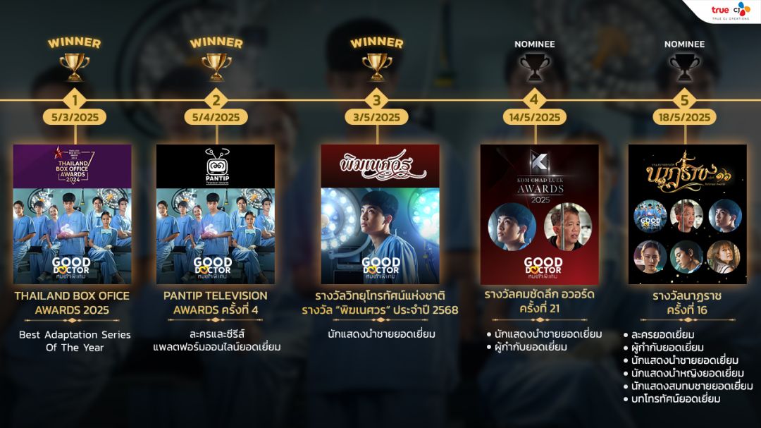 เรียกได้ว่าเป็นปีทองของวงการซีรีส์ไทย เมื่อผลงานคุณภาพอย่างซีรีส์ "Good Doctor TH หมอใจพิเศษ" ผลิตโดย บริษัท ทรู ซีเจ ครีเอชั่นส์ จำกัด ซึ่งออกอากาศทาง TrueID ได้รับความชื่นชมจากผู้ชมและนักวิจารณ์อย่างล้นหลาม ซึ่งล่าสุดถูกเสนอชื่อเข้าชิงรางวัลใหญ่ระดับประเทศอย่าง รางวัล “นาฏราช ครั้งที่ 16” และรางวัล “คมชัดลึก อวอร์ด ครั้งที่ 21” ตอกย้ำความสำเร็จของซีรีส์ที่นำเสนอมุมมองพิเศษของแพทย์ออทิสติก"Good Doctor TH หมอใจพิเศษ" เป็นการหยิบนำซีรีส์น้ำดีอย่าง Good Doctor โดยมีต้นฉบับมาจากเกาหลี ซึ่งเคยคว้ารางวัลไว้มากมาย ไม่ว่าจะเป็นละครยอดเยี่ยมหรือบทละครยอดเยี่ยม จนถูกนำไปรีเมคต่อในหลาย ๆ ประเทศทั้ง อเมริกา, ญี่ปุ่น, จีน รวมถึงเวอร์ชั่นไทย โดยมี "เน๋ง ศรัณย์ นราประเสริฐกุล" รับบทนำเป็นแพทย์ผู้มีภาวะออทิสติก ร่วมด้วยนักแสดงคุณภาพมากฝีมืออย่าง โทนี่ รากแก่น, แพต ชญานิษฐ์ ชาญสง่าเวช และ สัญญา คุณากร ซึ่งได้รับกระแสตอบรับจากแฟนซีรีส์อย่างล้นหลาม พร้อมคว้ารางวัลการันตีมากมาย อาทิ รางวัล Best Adaptation Series Of The Year จาก Thailand Box Office Awards 2024, รางวัลละครและซีรีส์แพลตฟอร์มออนไลน์ยอดเยี่ยม จาก Pantip TV Awards ครั้งที่ 4 และ"เน๋ง ศรัณย์ นราประเสริฐกุล" คว้ารางวัลนักแสดงนำชายยอดเยี่ยม จากงานประกาศรางวัลวิทยุโทรทัศน์แห่งชาติ พิฆเนศวรครั้งที่ 13 ประจำปี 2568 ที่ผ่านมา และยังคงเดินสายรับรางวัลอย่างต่อเนื่อง