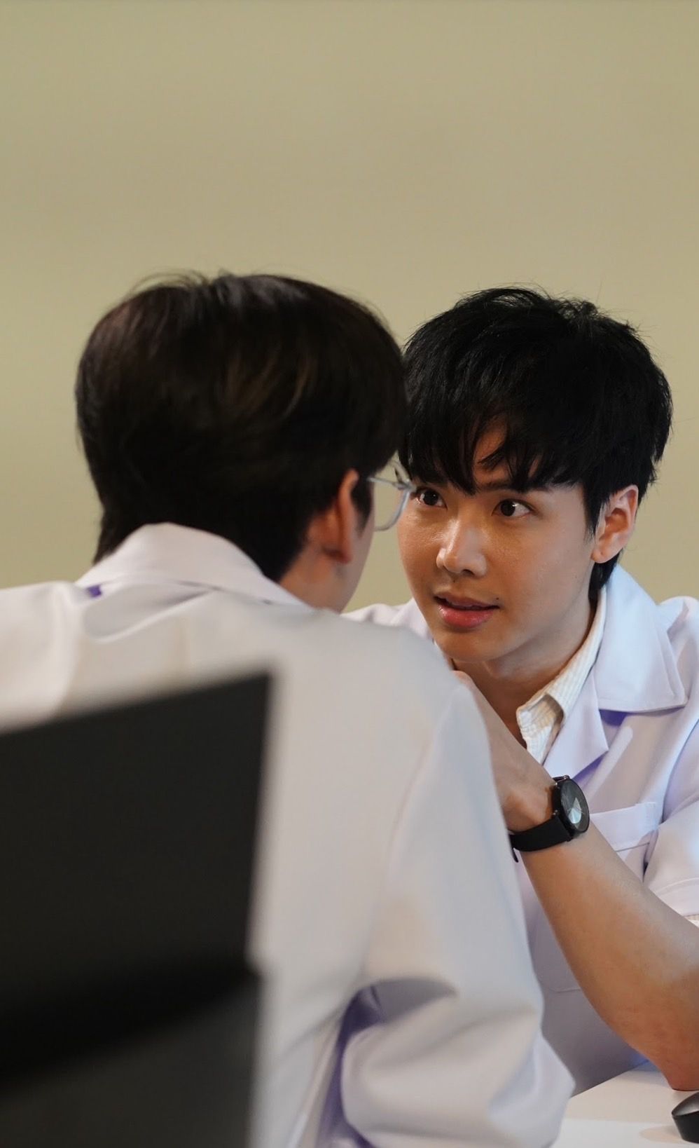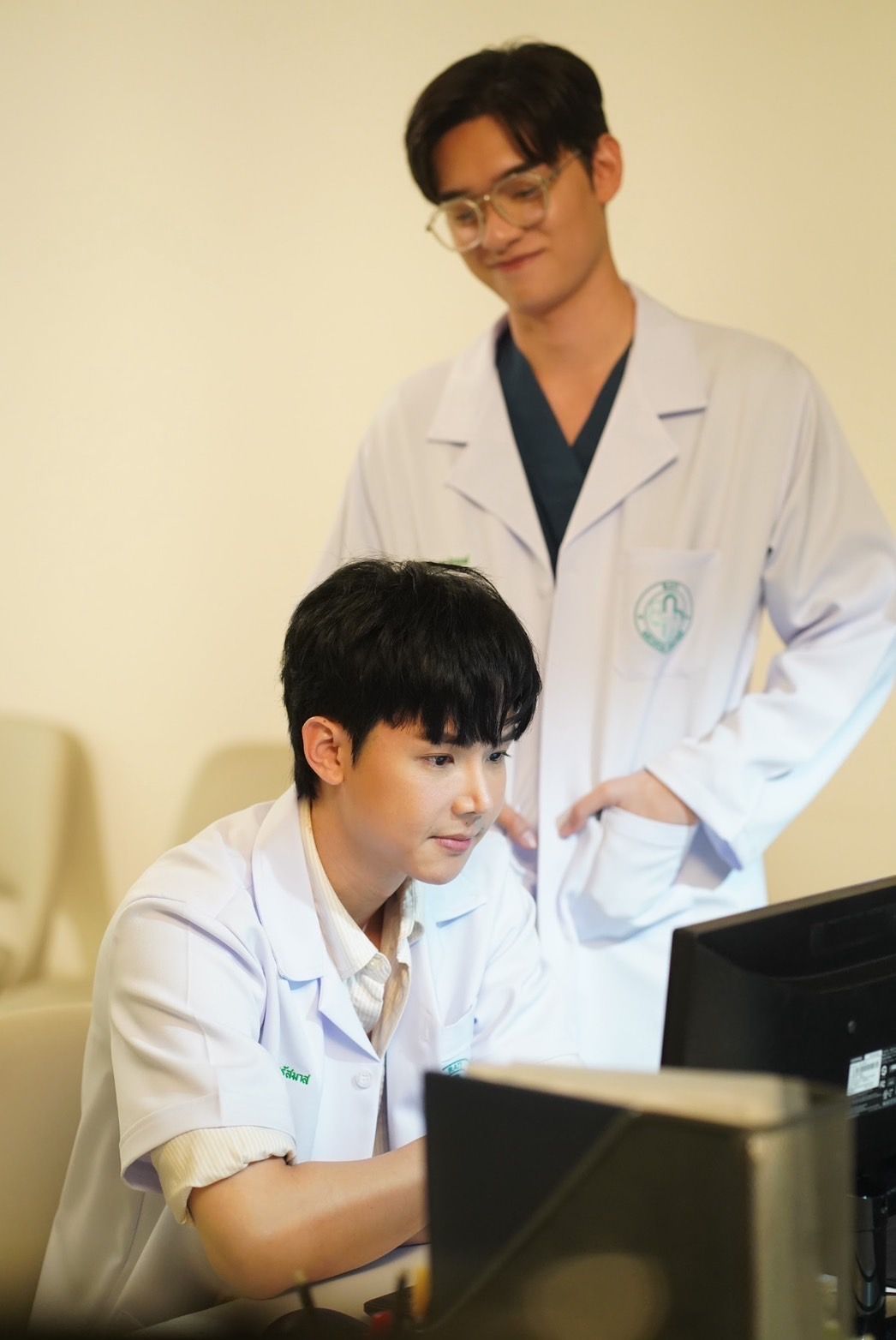 “ก้าวหน้า-กิตติภัทร แก้วเจริญ” รับบท “นายแพทย์ตุลา” เผยว่า “ผมเป็นหมอตุลาครับ อาจารย์ศัลยแพทย์ที่เก่งมาก หัวหน้าคุมอินเทิร์น จะนิ่งๆ เคร่งขรึม เด็ดขาด เป็นผู้ใหญ่และเป็นที่พึ่งให้กับหมอเด็กๆ ในทีม โดยเฉพาะหมอกวิน (ยิ้ม) บทหมอนี่ยากมากๆ ครับ ผมต้องเล่นเป็นหมอที่อายุมากกว่าอายุจริงถึง 6 ปีเลย (ก้าวอายุ27) เราต้องดูเป็นผู้ใหญ่ เข้มงวด จริงจัง ผมเลยต้องทำการบ้านในส่วนนี้มากๆ ครับ และเป็นหมอศัลย์ที่เก่งมากๆ เราจึงต้องเรียนรู้เทคนิคทางการแพทย์ให้เหมือนกับว่าเราเป็นหมอจริงๆ ทั้งเรื่องการล้างมือ การหยิบอุปกรณ์ เรียกอุปกรณ์ ศัพท์ทางการแพทย์ การผ่าตัด ซึ่งก็ได้คุณหมอจริงจากทีมแพทยสภามาให้คำแนะนำทั้งตอนเวิร์คช็อปและตอนถ่ายจริง ทำให้มั่นใจมากขึ้นเยอะเลยครับ ตอนเด็กๆผมมีความฝันอยากเป็นหมอครับ การได้รับโอกาสมาเล่นเรื่องนี้เหมือนได้เติมเต็มความฝันในวัยเด็ก กับพี่กานต์(หมอกวิน) ต้องเล่นด้วยกันเยอะมาก สนุกดีครับ แรกๆ ที่เจอกันก็เขินๆ ไม่ค่อยกล้าคุย แต่พอสนิทกันก็คุยกับพี่เค้าไปเรื่อยครับ อีกอย่างพี่กานต์นี่เล่นกีตาร์เก่งมาก”