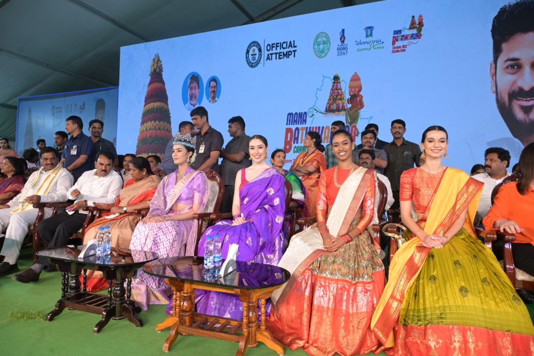 มิสเวิลด์ 2025 “โอปอล-สุชาตา ช่วงศรี” พร้อมด้วย “จูเลีย มอร์ลีย์” CBE ประธานและผู้ก่อตั้งองค์กรมิสเวิลด์ และเหล่าควีนทวีปปี 2025 เดินทางเยือนประเทศอินเดีย เพื่อร่วมเป็นสักขีพยานในพิธีบันทึกสถิติ เจดีย์ดอกไม้สูงที่สุดในโลก ภายใต้เทศกาล “บาตุกัมมา” (Bathukamma) ของรัฐเตลังคานา