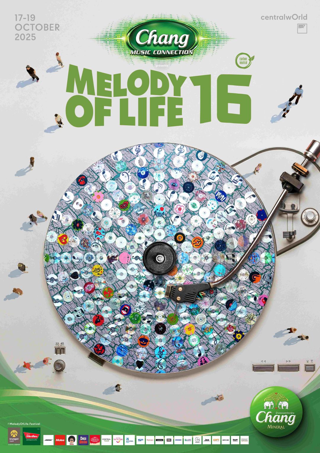 เตรียมพบกับเทศกาลดนตรีขนาดยักษ์ที่ให้ความสนุกและรักโลกที่สุด อย่าง “Chang Music Connection Presents Melody Of Life 16” (ช้าง มิวสิค คอนเนคชั่น พรีเซนต์ เมโลดี้ ออฟ ไลฟ์ ครั้งที่ 16) ในวันที่ 17-19 ตุลาคม 2568 ณ ศูนย์การค้าเซ็นทรัลเวิลด์ ซึ่งจัดมาอย่างต่อเนื่องและยิ่งใหญ่ขึ้นทุกปีโดย ค่ายเพลง สไปร์ซซี่ ดิสก์ (SPICYDISC) ร่วมกับ ศูนย์การค้า เซ็นทรัลเวิลด์ ที่พร้อมจะให้ทุกคนได้สนุกไปกับมหกรรมฟรีคอนเสิร์ตจากศิลปินกว่าร้อยชีวิต และคงคอนเซปต์ให้ทุกคนช่วยกันรักษ์โลก ด้วยการจัดกิจกรรมชดเชยคาร์บอนที่เกิดจากการจัดงานให้เป็นศูนย์