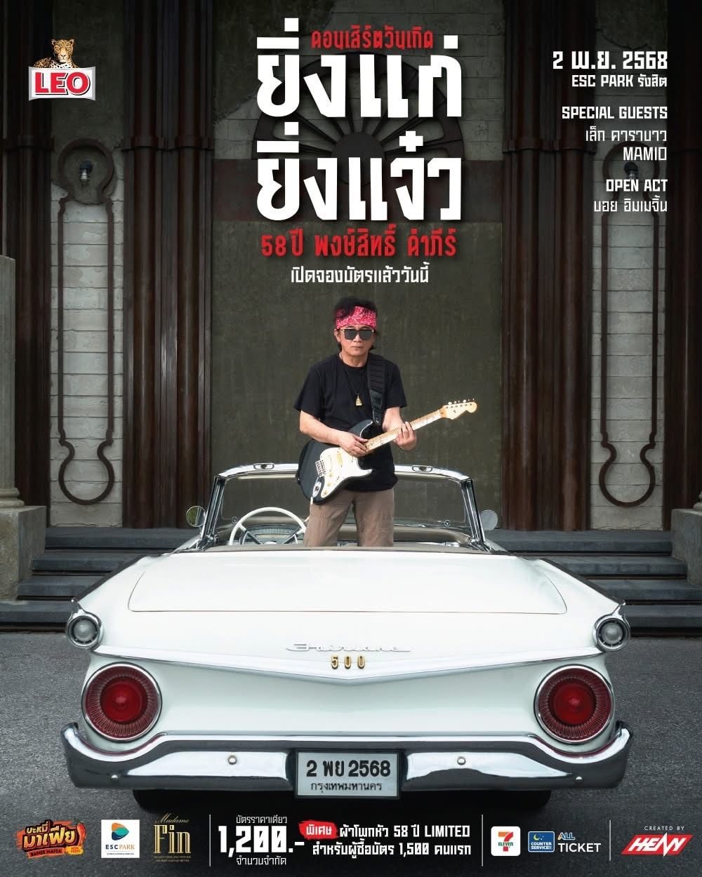 HEAVY ออแกไนซ์สุดเก๋า เนรมิตงานคอนเสิร์ต “วันเกิด 58 ปี พงษ์สิทธิ์ คำภีร์ ยิ่งแก่ ยิ่งแจ๋ว” วันอาทิตย์ที่ 2 พฤศจิกายน 2568 ณ ESC PARK รังสิต คอนเสิร์ตที่สุด Exclusive ที่จะเต็มไปด้วยบรรยากาศอบอุ่นเป็นกันเอง ที่จะรวบรวมบทเพลงเพื่อชีวิตอันทรงคุณค่า และเป็นที่รักของแฟนเพลงหลายรุ่น พร้อมแขกรับเชิญสุดพิเศษ